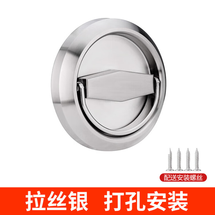 Honggong Stainless Steel Round Pull Ring Handle No Punching Exposed Handle Hidden Door Fire Box Invisible Concealed Handle Brushed Silver Perforated Style