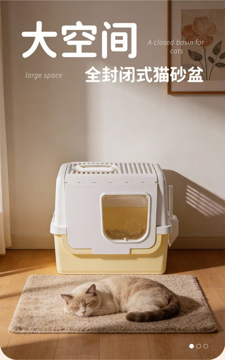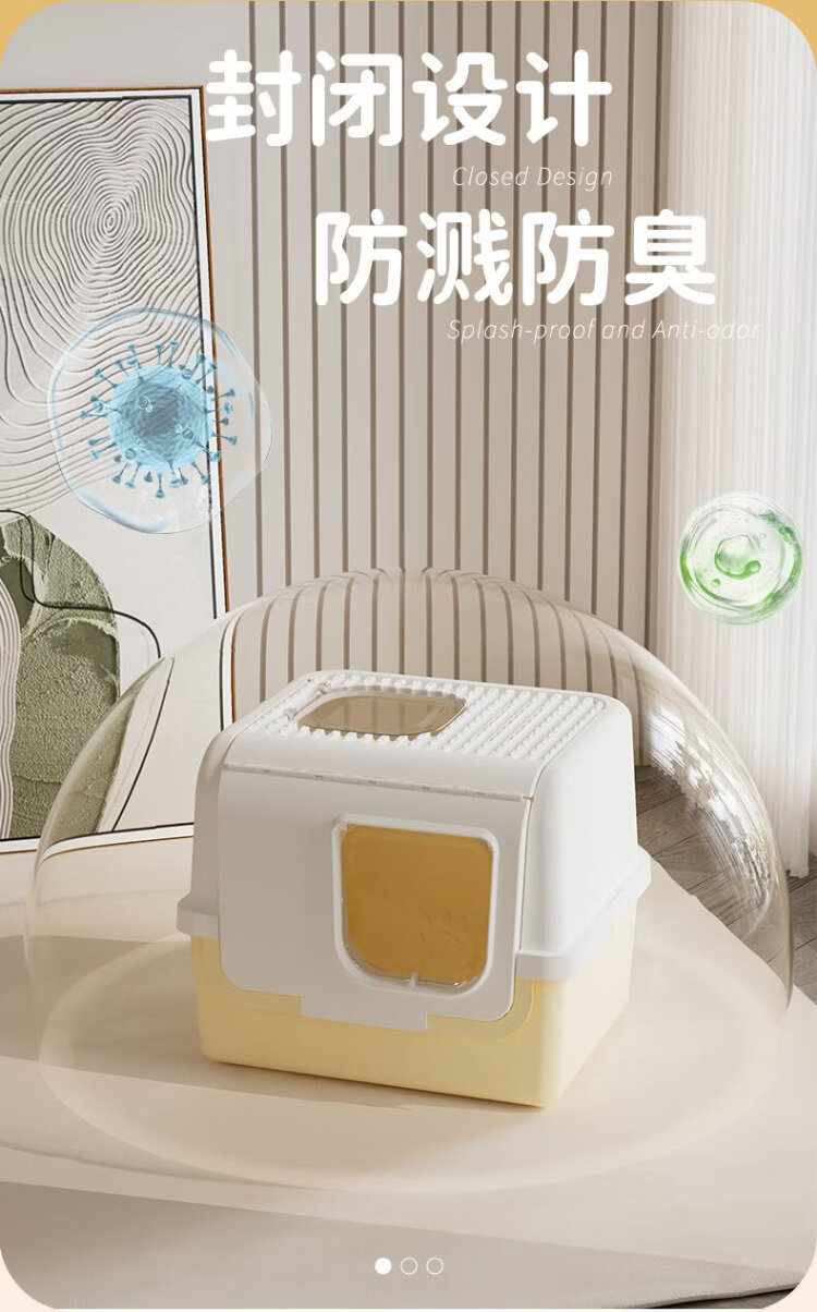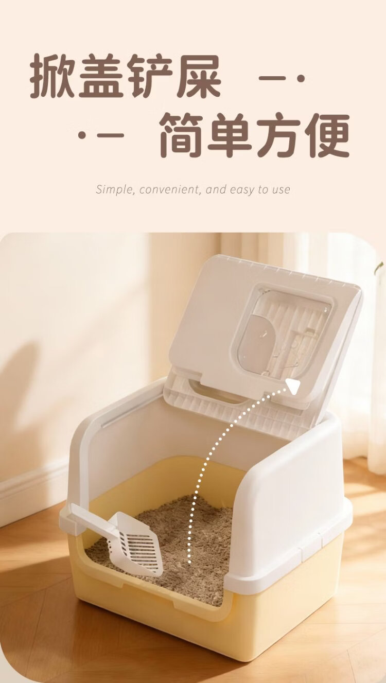 Leyoupai extra-large cat litter box fully enclosed flip-up anti-splash kitten cat litter box cat litter box cat litter box cat toilet milk yellow