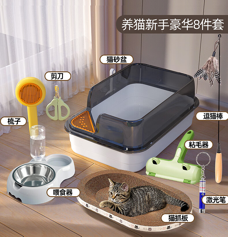 HELLOJOY Cat Litter Box Extra Large Cat Novice Set Feeding Water Cat Nest Cat Comb Sticky Hair Combination Eight-piece Set