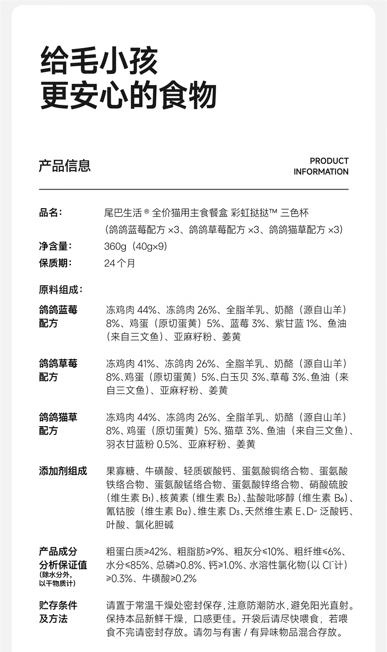 Tail Life Rainbow Tart Cat Staple Food Lunch Box 40g*9 Adult Cat and Kitten Staple Food Cans Cat Nutrition Full Price Wet Food Cans