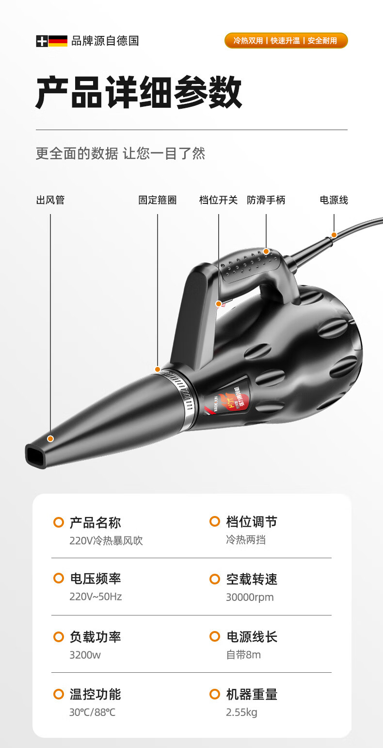 Deyun hot air gun stone special high temperature storm powerful industrial hair dryer heating and drying warm air drying gun snow blower