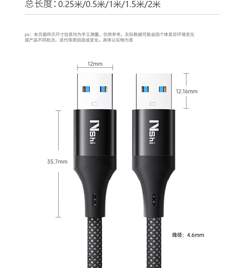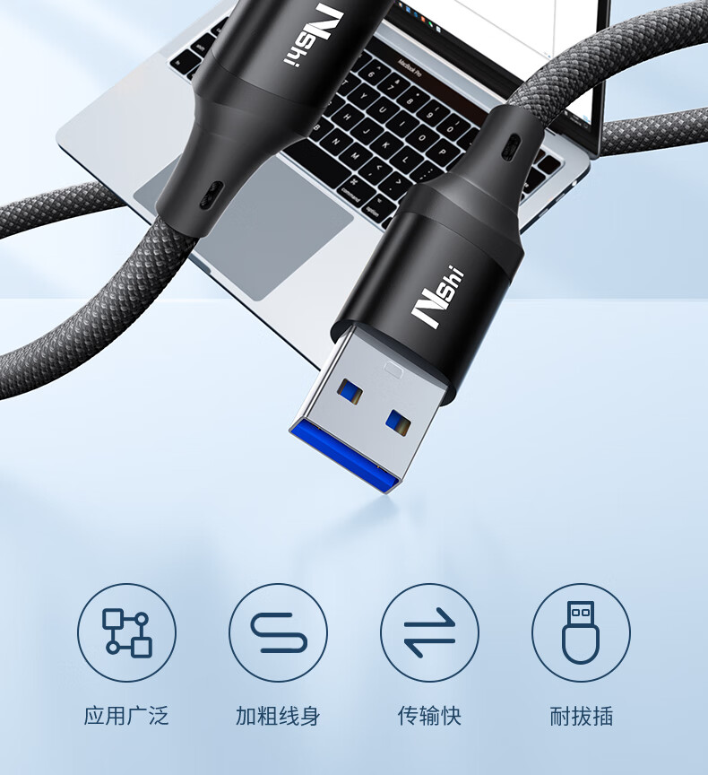 Suitable for fast USB3.0 data cable, male-to-male double-head mobile hard disk, high-speed transmission cable, notebook MP3 car set-top box extension cable 0.5 meters