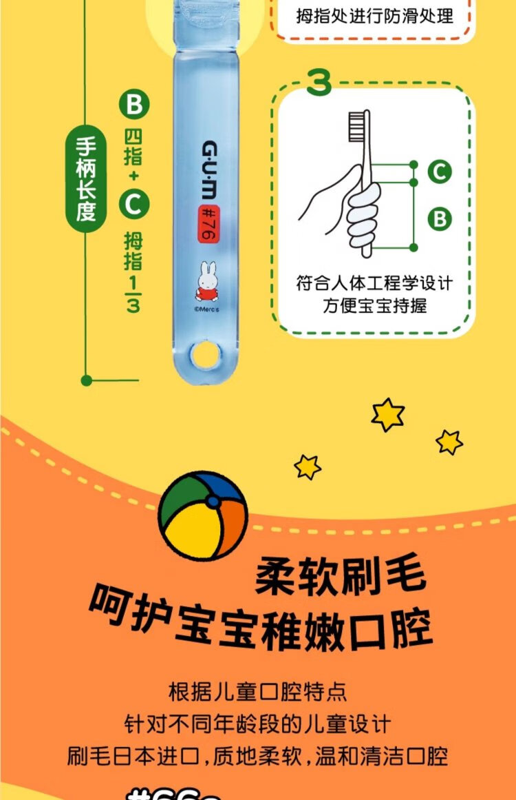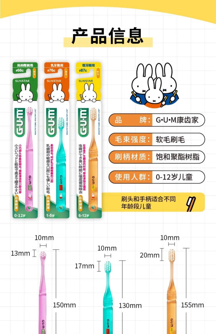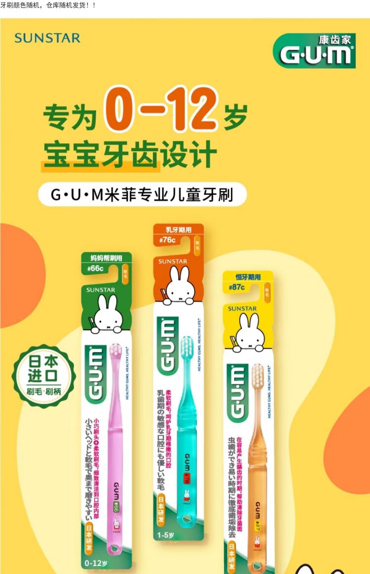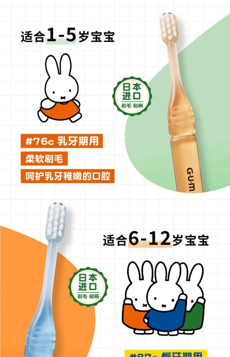 SUNSTAR Miffy Children's Toothbrush Cleansing Gums 87c, 4 soft bristles (6-12 years old), random colors