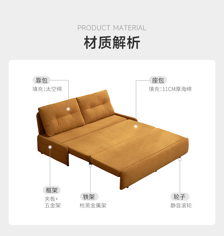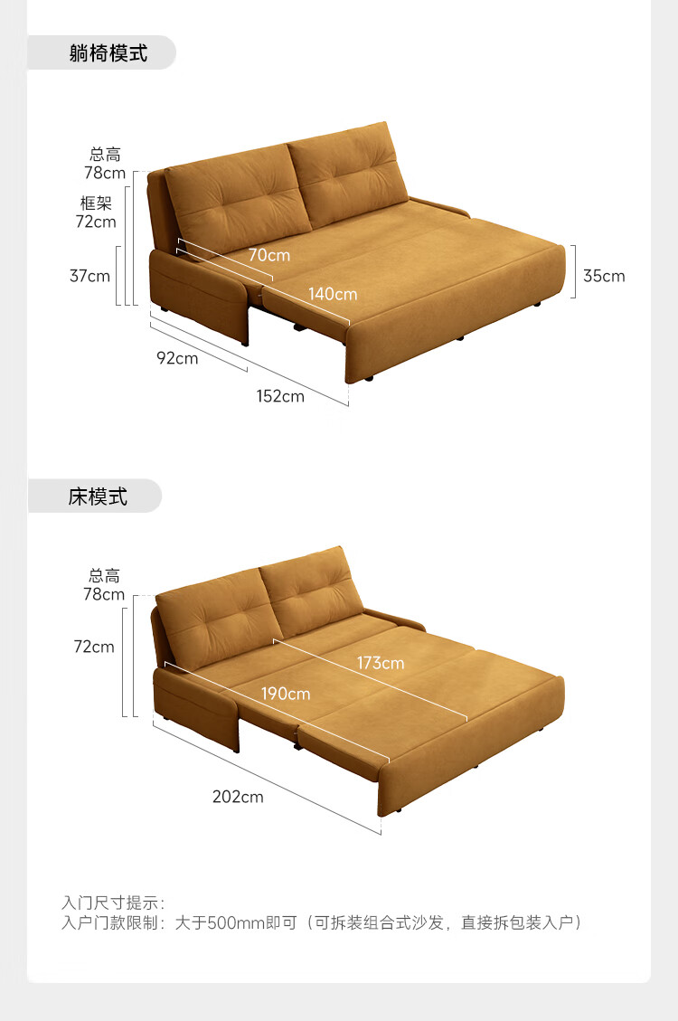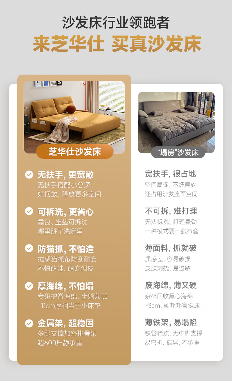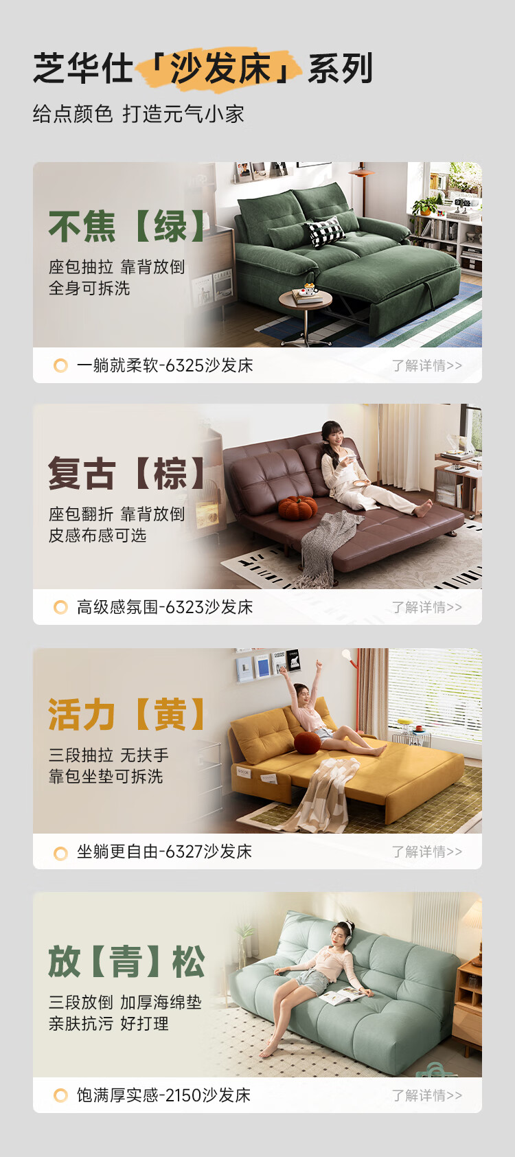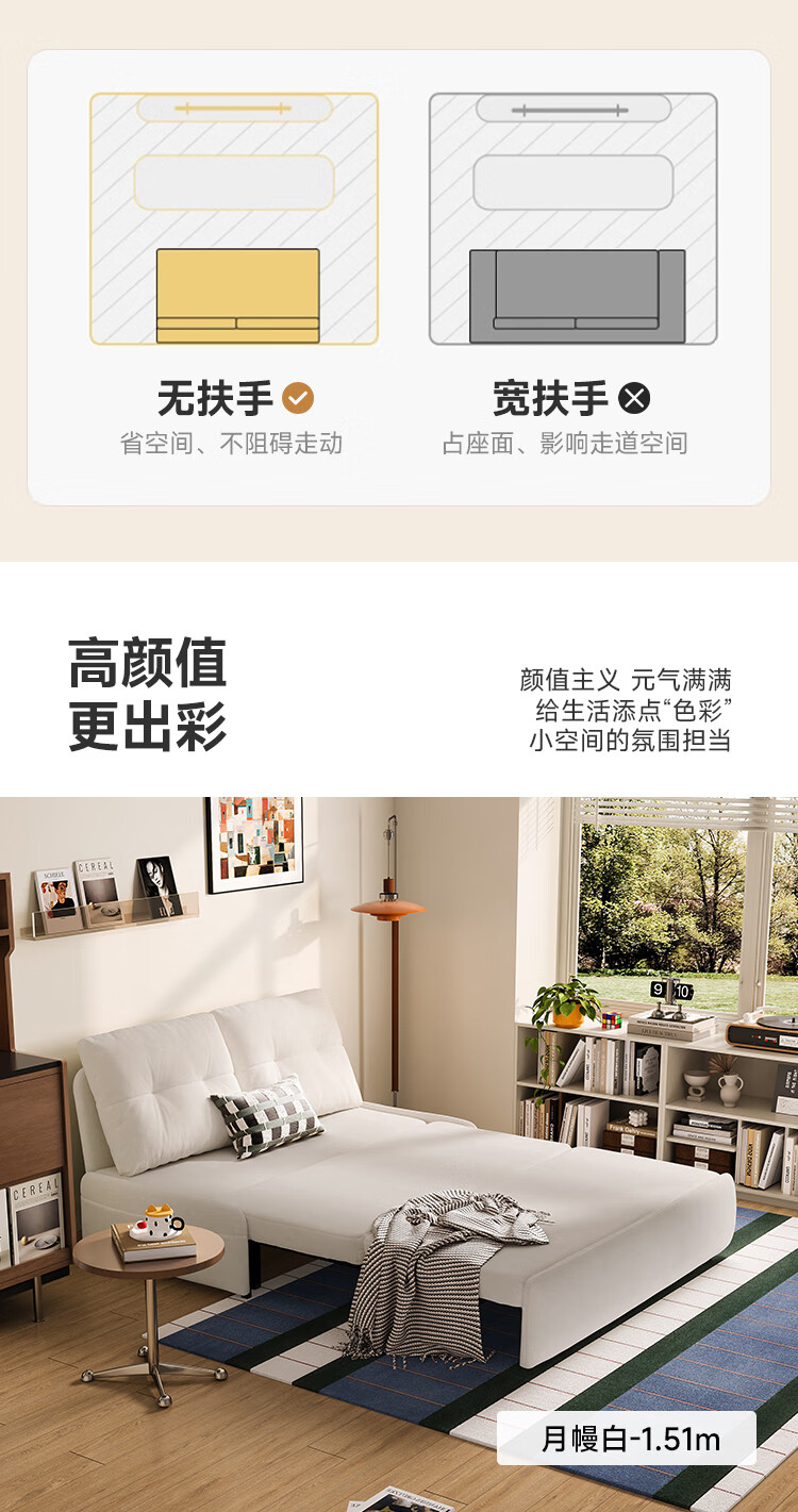 CHEERS sofa bed folding telescopic all-in-one small apartment bedroom study 2025 new 6327 white 1.51m