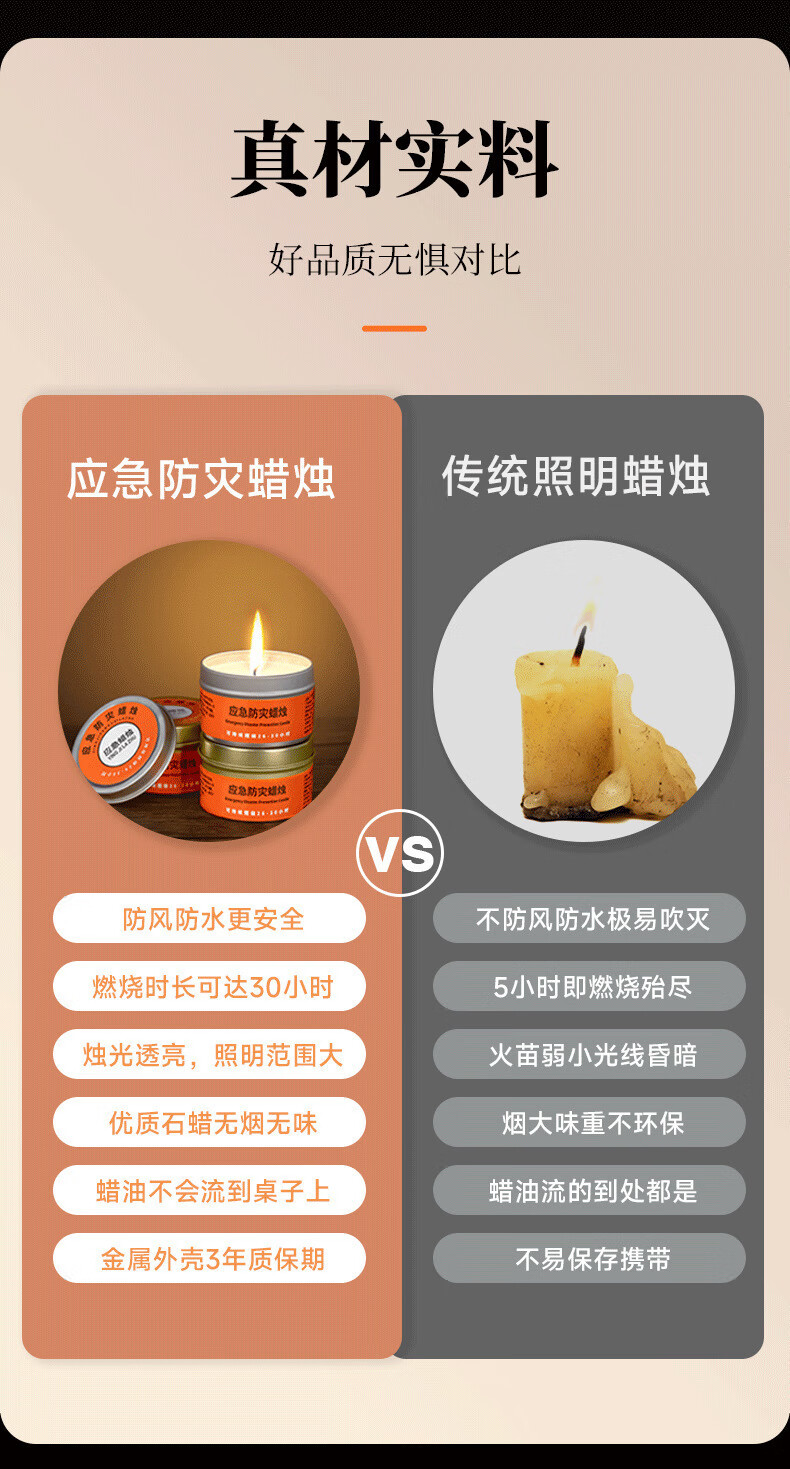 Cast solid emergency candle disaster prevention backup power outage lighting waterproof windproof smokeless candle 2 pack