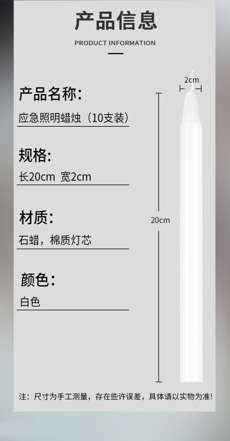 Mandelai emergency lighting candle white 10-pack smokeless old-fashioned straight wax experimental daily power outage earthquake 2*20cm