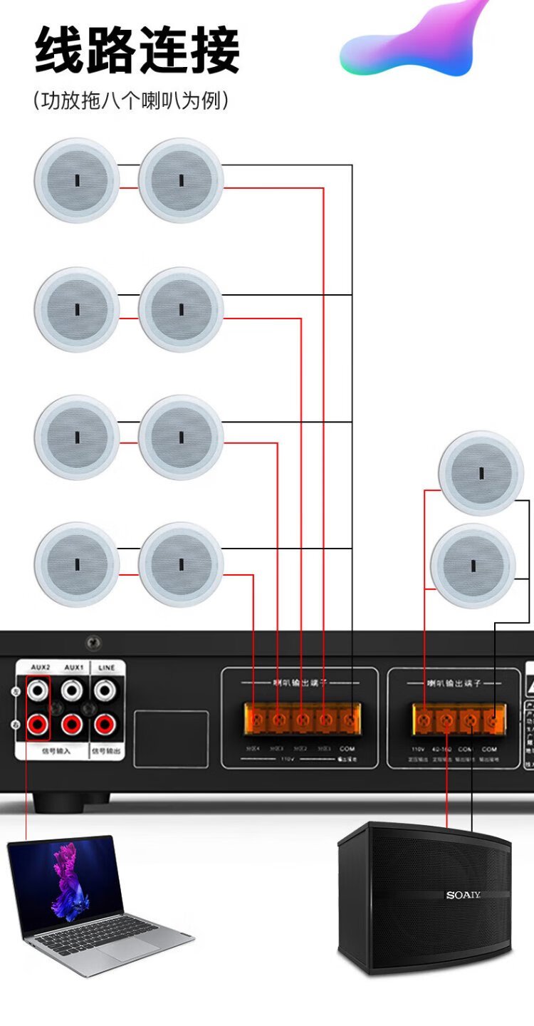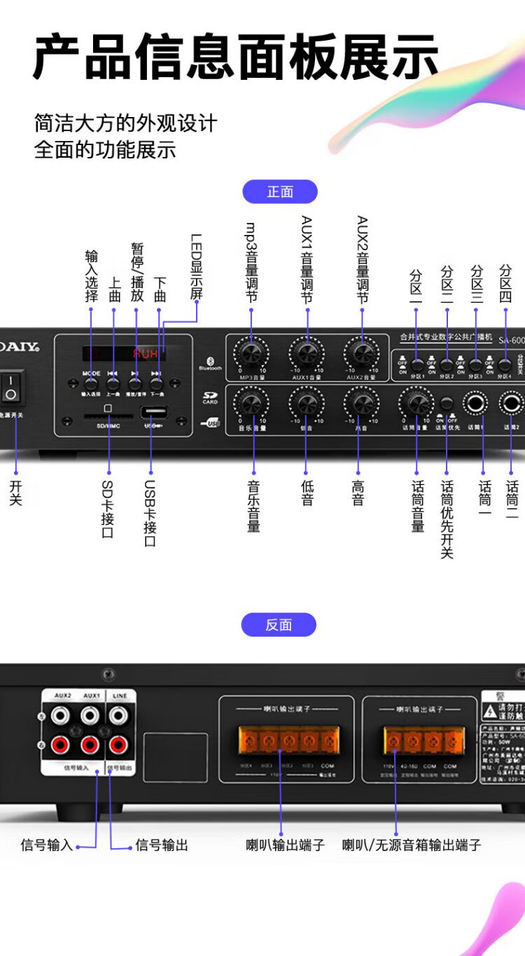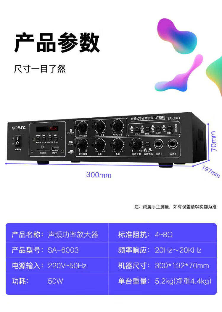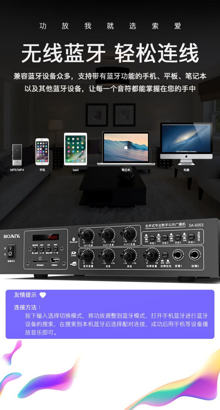 Sony Ericsson (soaiy) SA-6003 high-power constant voltage power amplifier public broadcasting four-zone ceiling wall-mounted column speaker home power amplifier