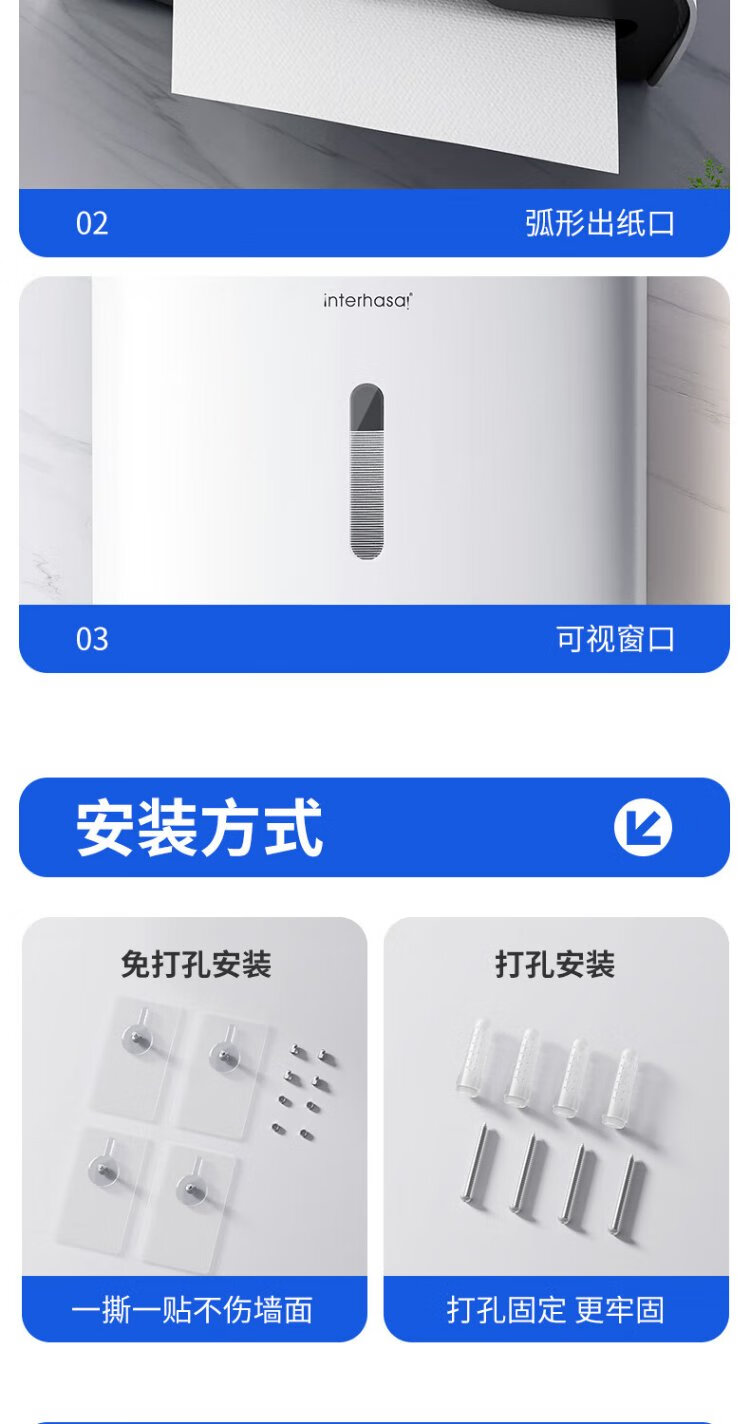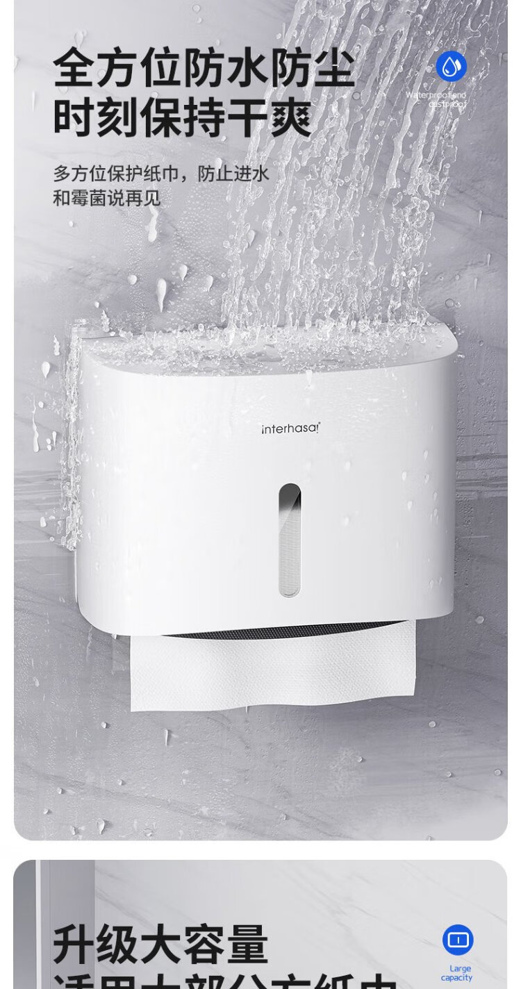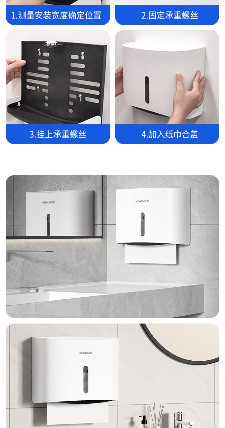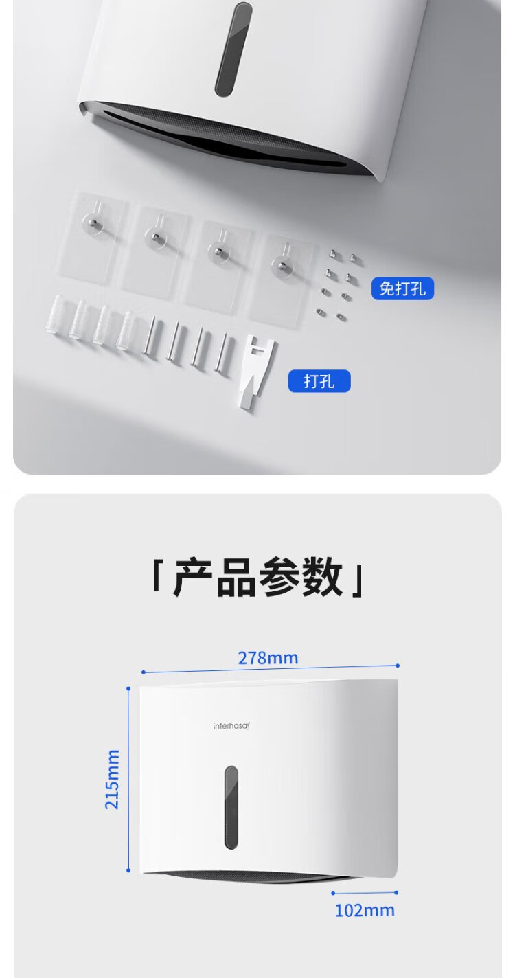 Interhasa (interhasa!) E6015 hand towel box wall-mounted sanitary napkin tissue box toilet paper box kitchen dryer paper box punch-free white