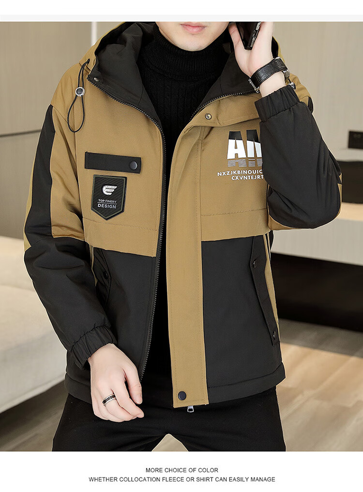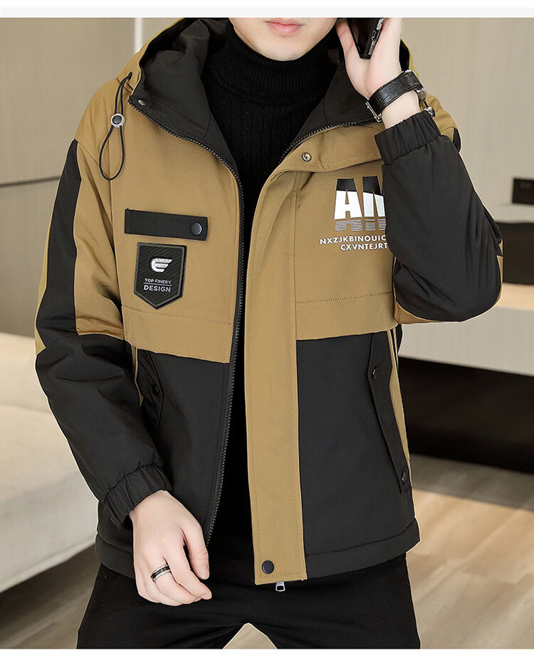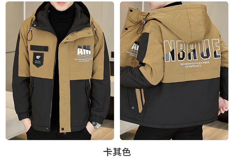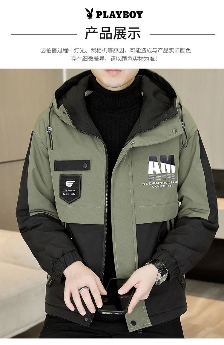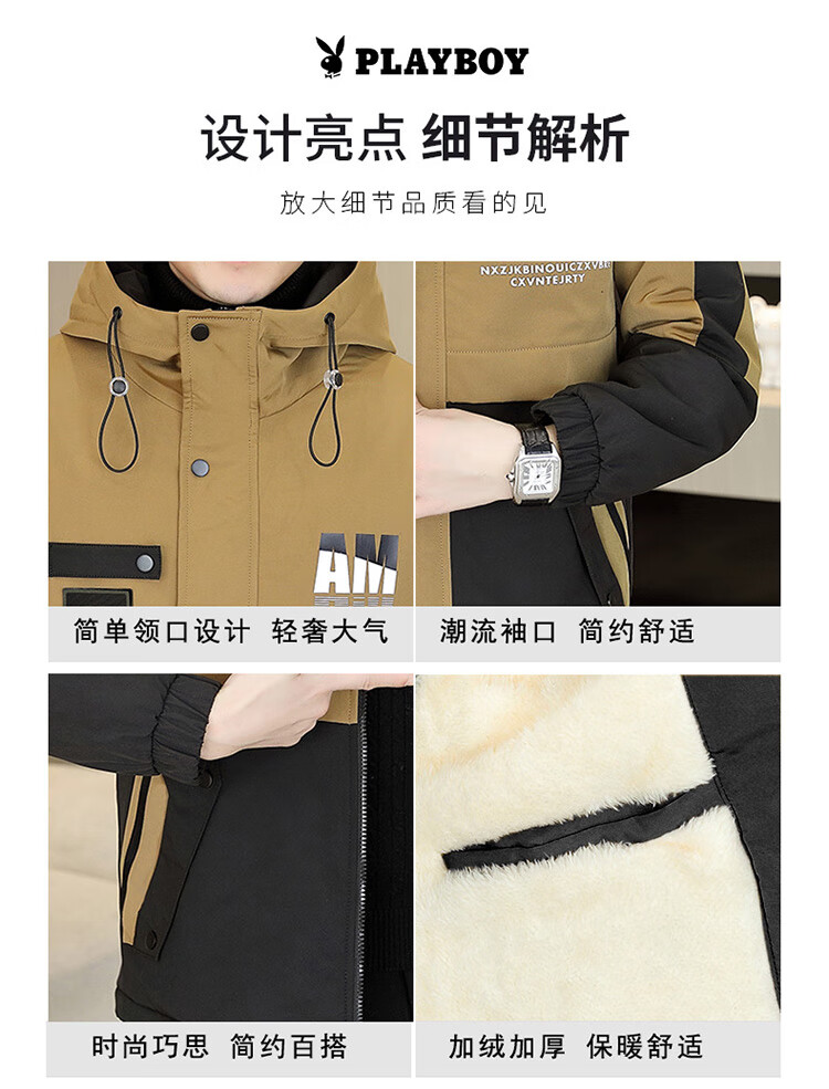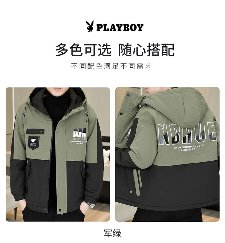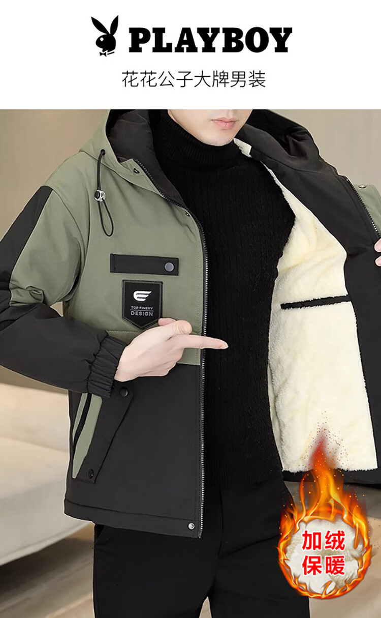 Playboy (PLAYBOY) jacket men's velvet thickened casual jacket men's autumn and winter workwear hooded high-end assault cotton clothes