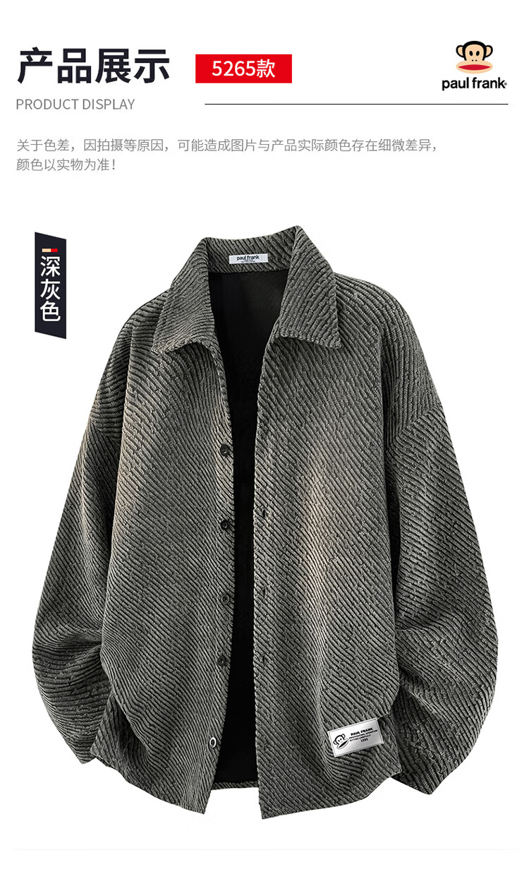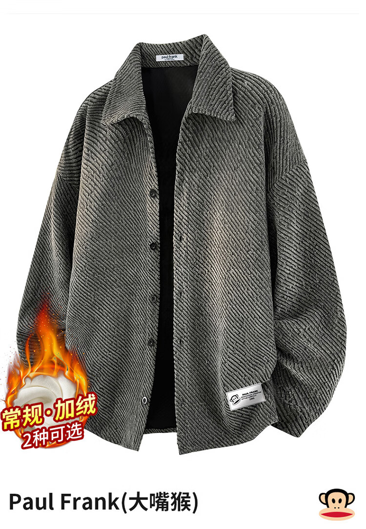 Paul Frank Jacket Men's Autumn and Winter American Jacket Men's Loose Casual Cardigan Top Men's Dark Gray 2XL
