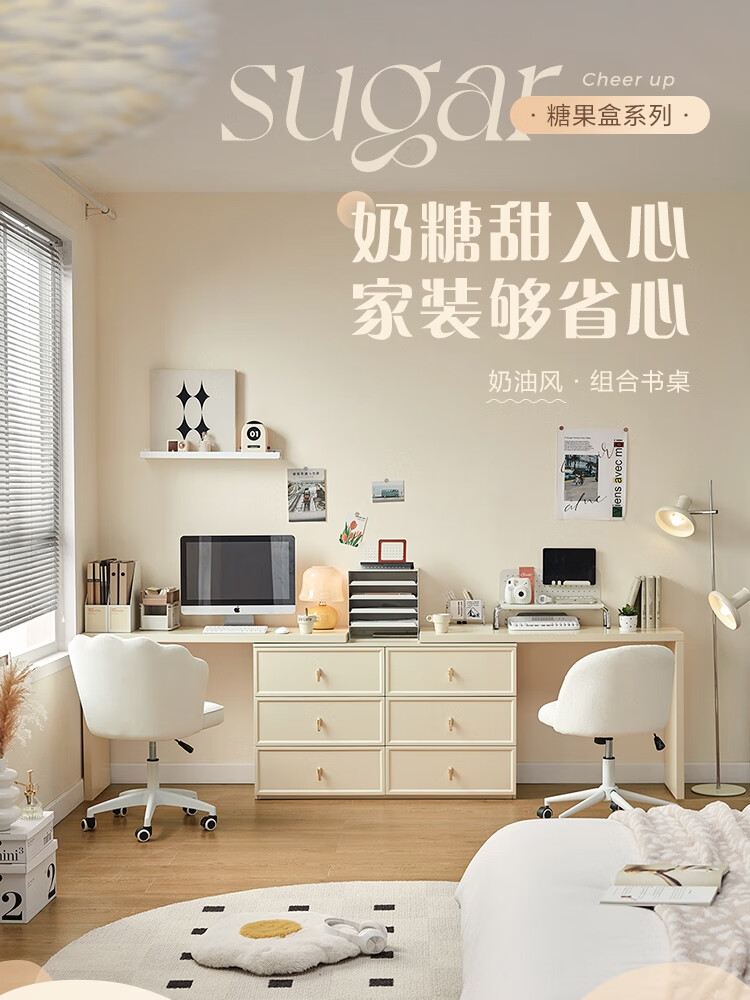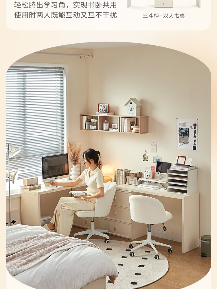 Lin's home simple desk and chair combination study home double desk and bookcase in one TO1V desk + three drawers