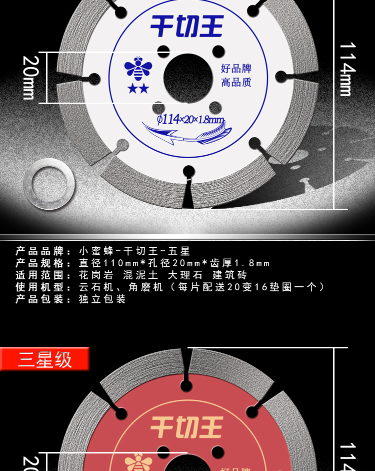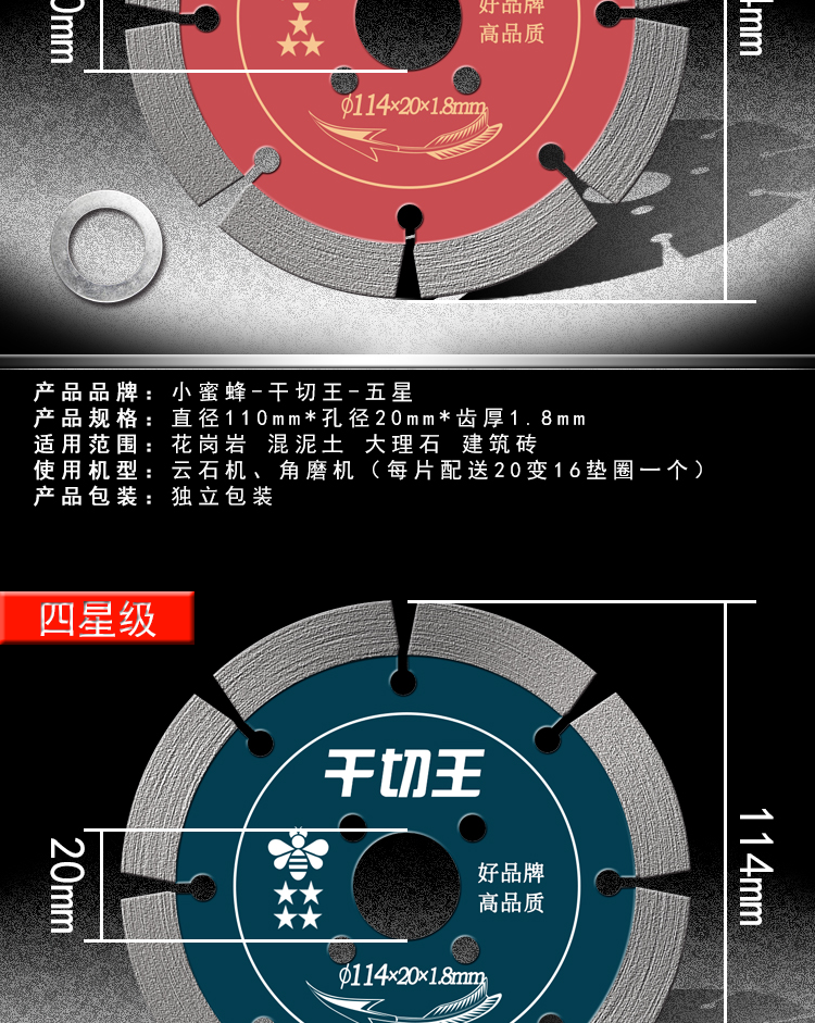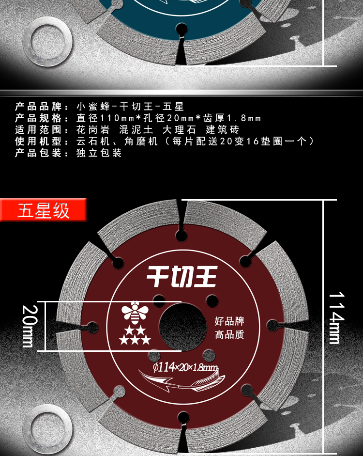 Little Bee Dry Cutting King Stone Cutting Sheet Cement Concrete Stone Granite Dry Cutting Saw Blade Marble Machine Blade Five Star-Dry Cutting King (XMF)