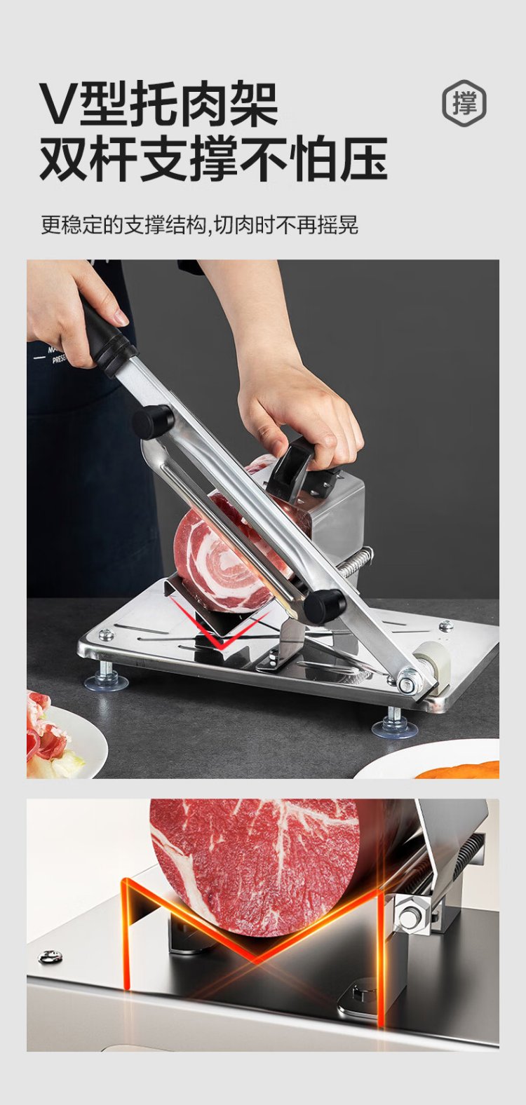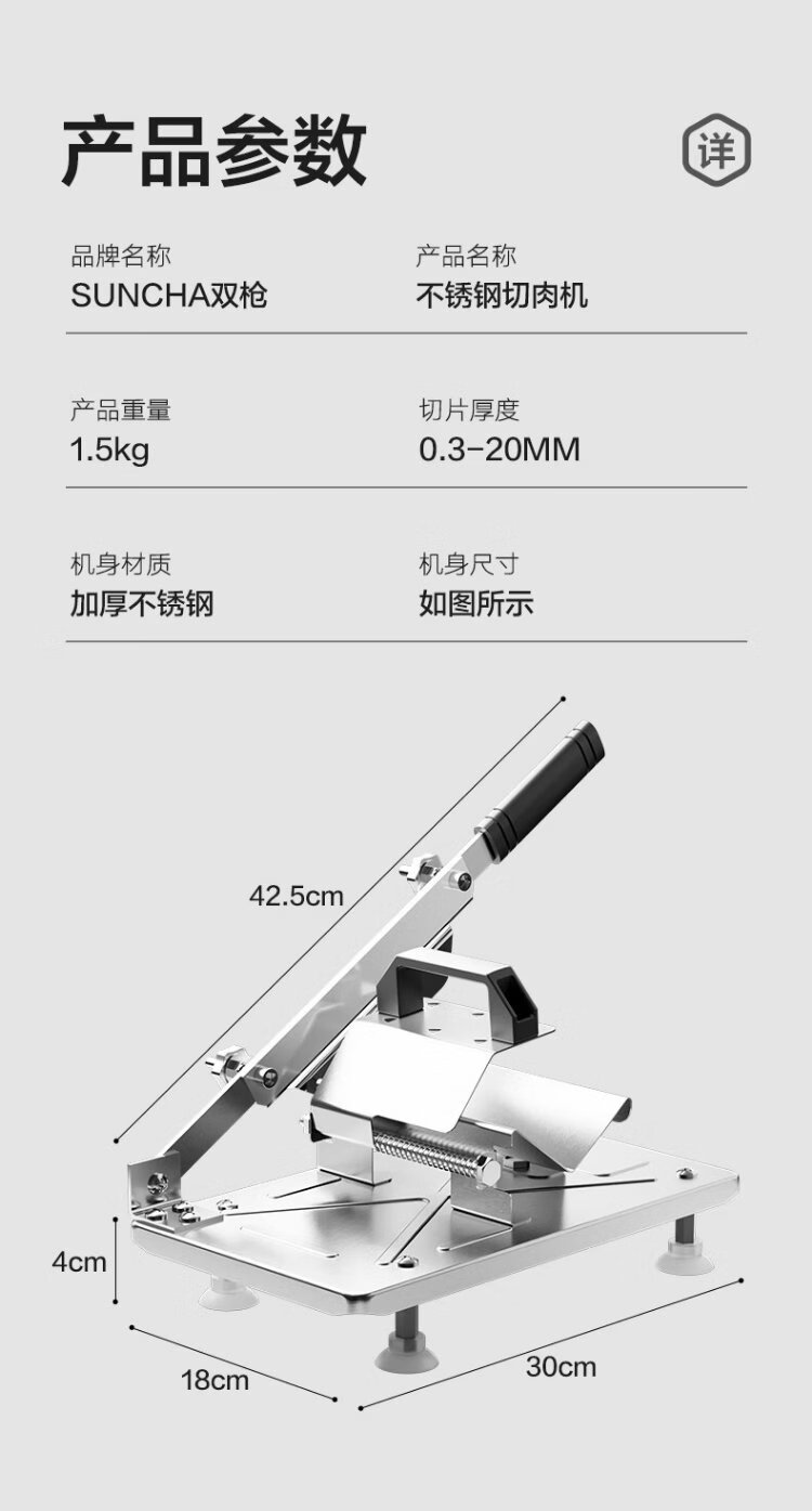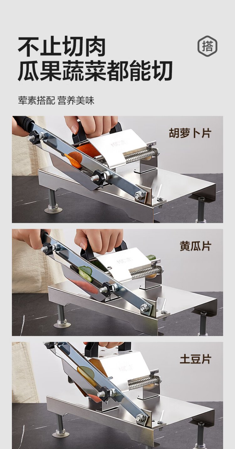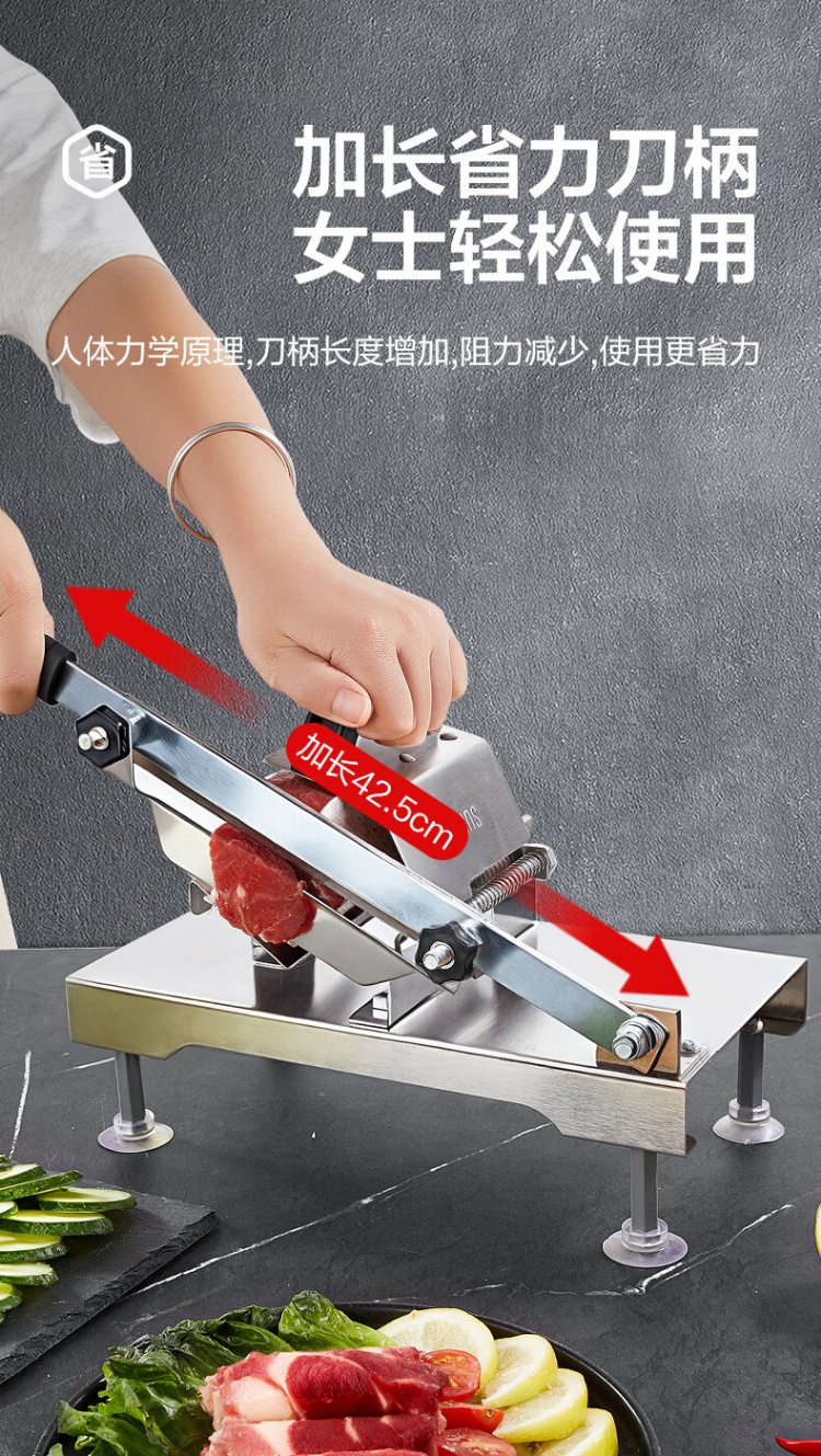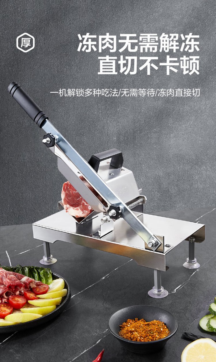 Double gun (Suncha) meat slicer beef and mutton roll slicer household meat planer potato cutting artifact manual cutting frozen meat fat beef guillotine
