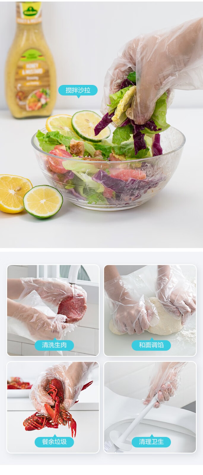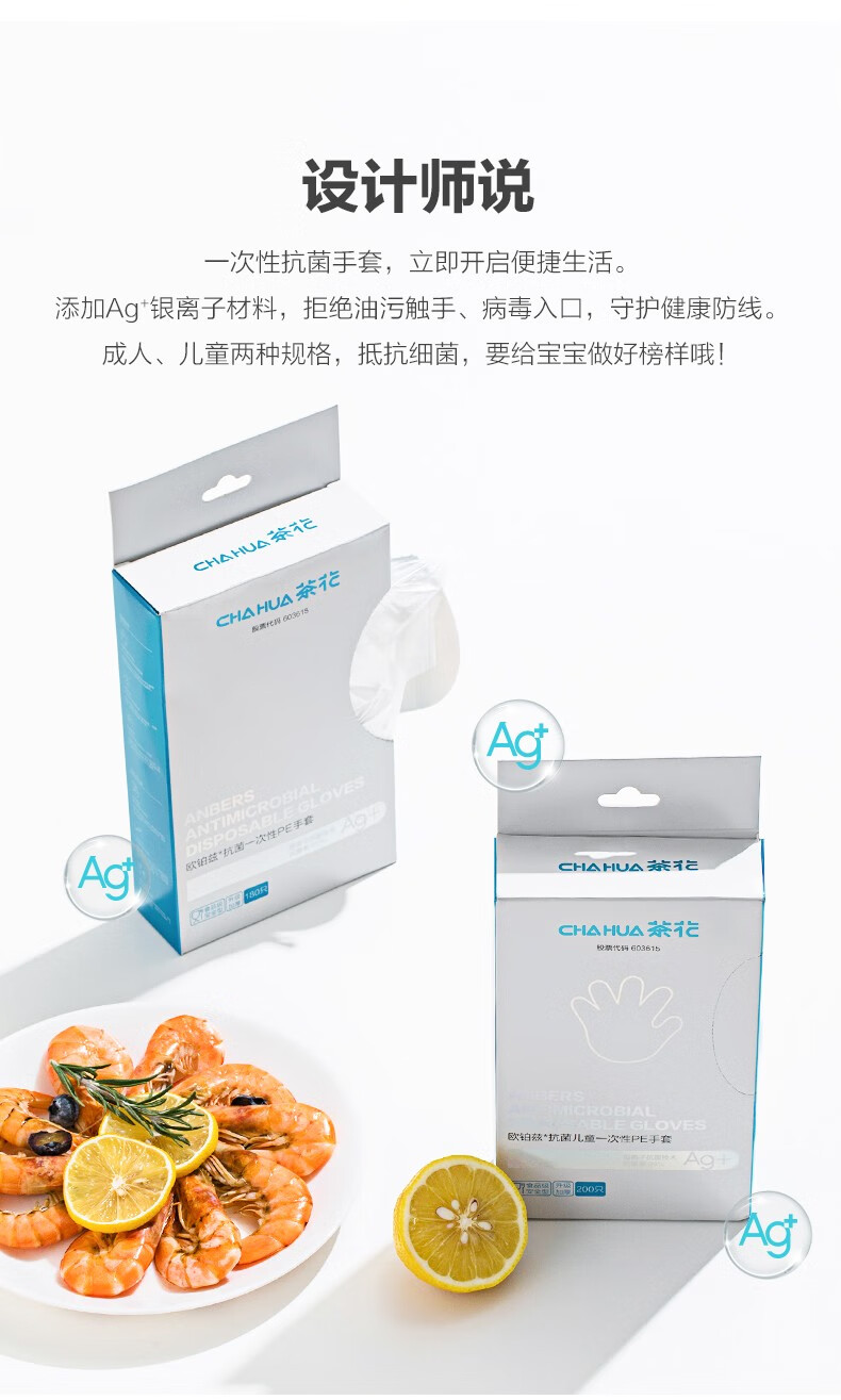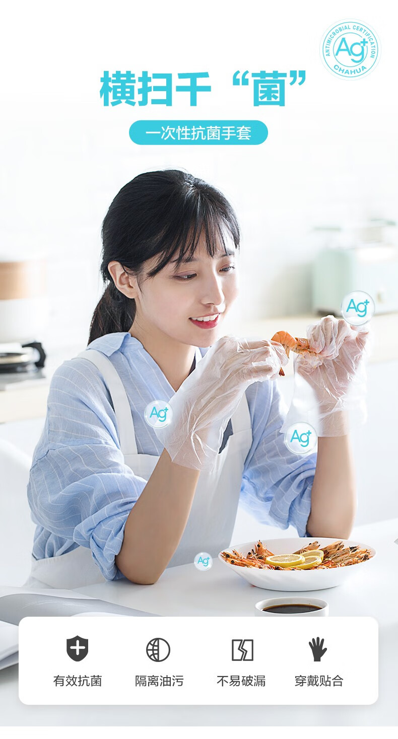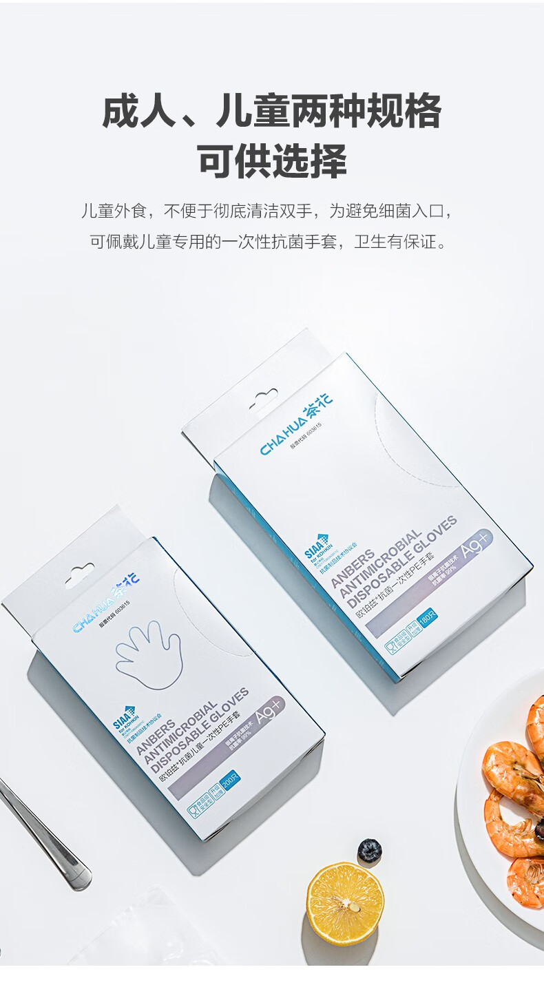 Camellia silver ion antibacterial disposable gloves thickened food and catering plastic transparent film hygiene products PE gloves children's #antibacterial 200 pieces