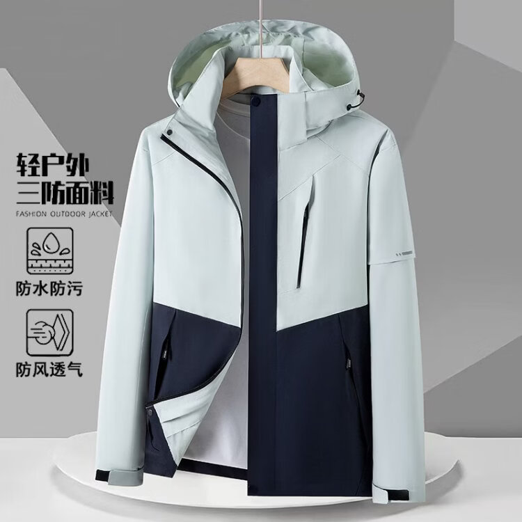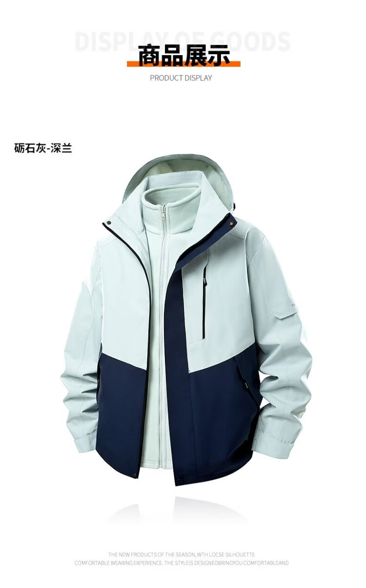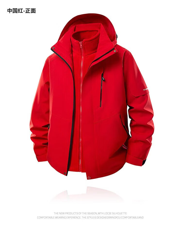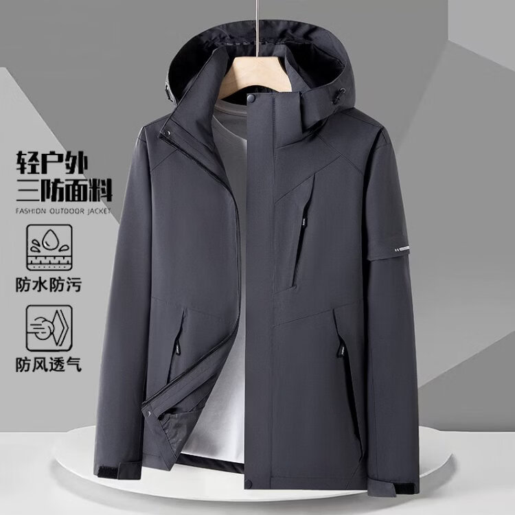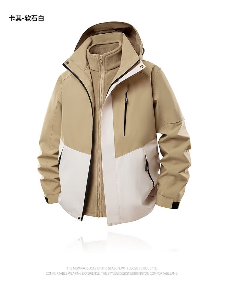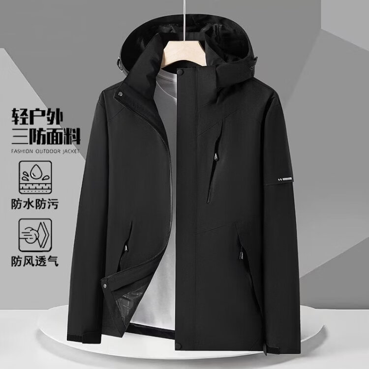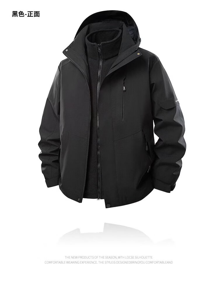 PLAYBOY Jacket Men's Autumn and Winter Three-in-One Jacket Hooded Outdoor Casual Jacket Black XL