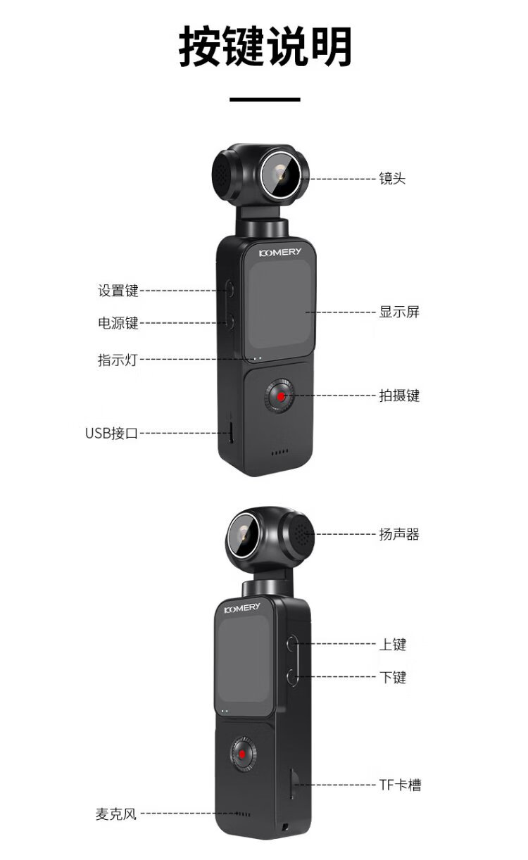 KomeryPX3 digital pocket action camera HD 5K handheld anti-shake camera beauty filter travel vlog selfie black touch screen version 128G