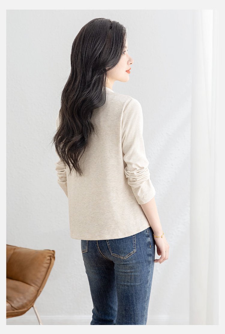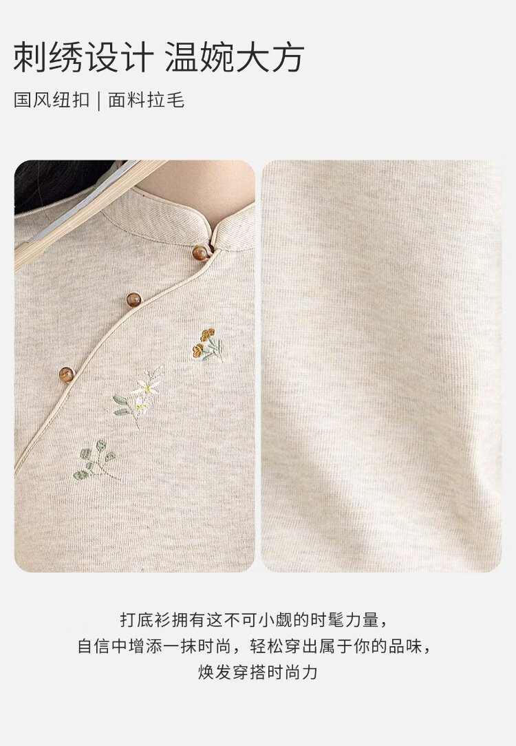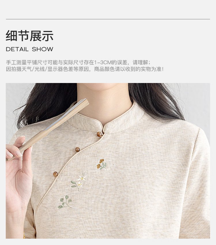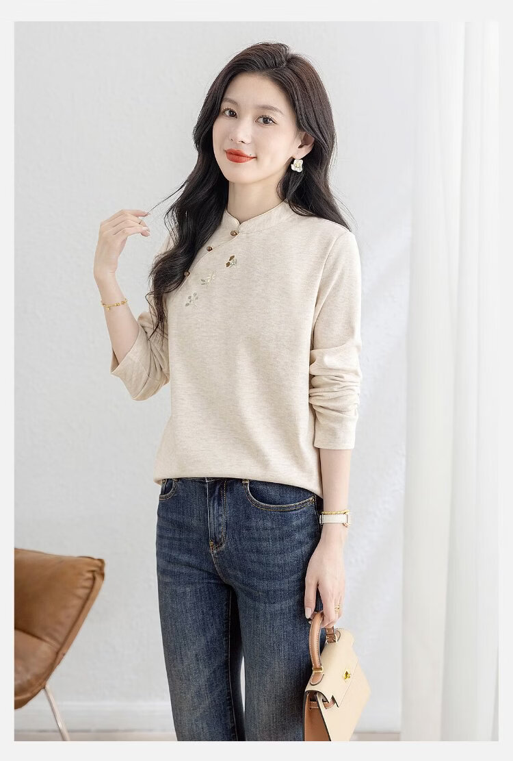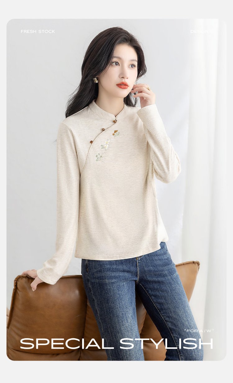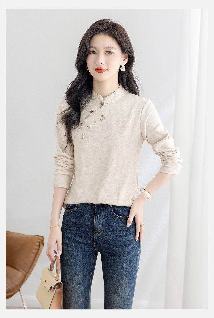 Cypress stand-up collar embroidered shirt for women 2025 autumn new style retro long-sleeved slimming new Chinese style bottoming shirt