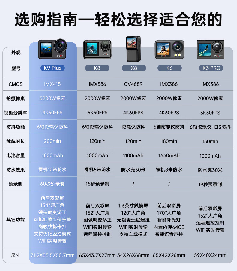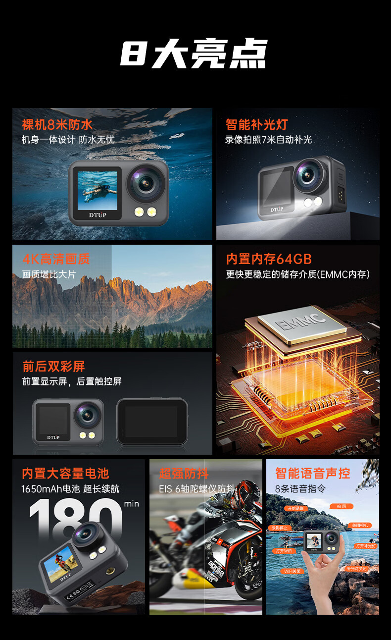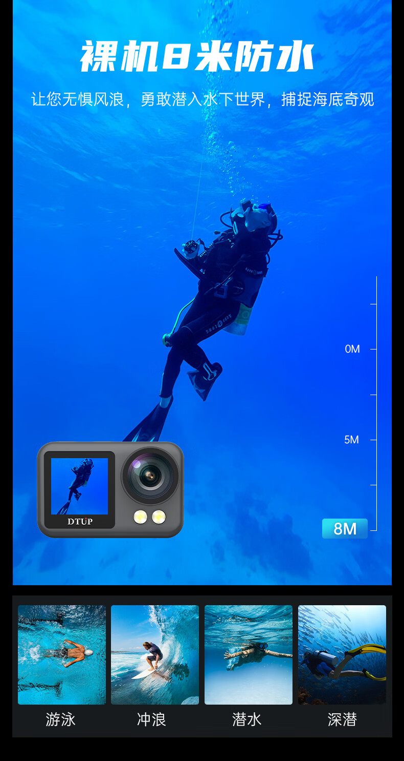 DTUPK6 underwater camera 4K HD waterproof and anti-shake action camera Vlog digital action camera outdoor diving camera underwater suit