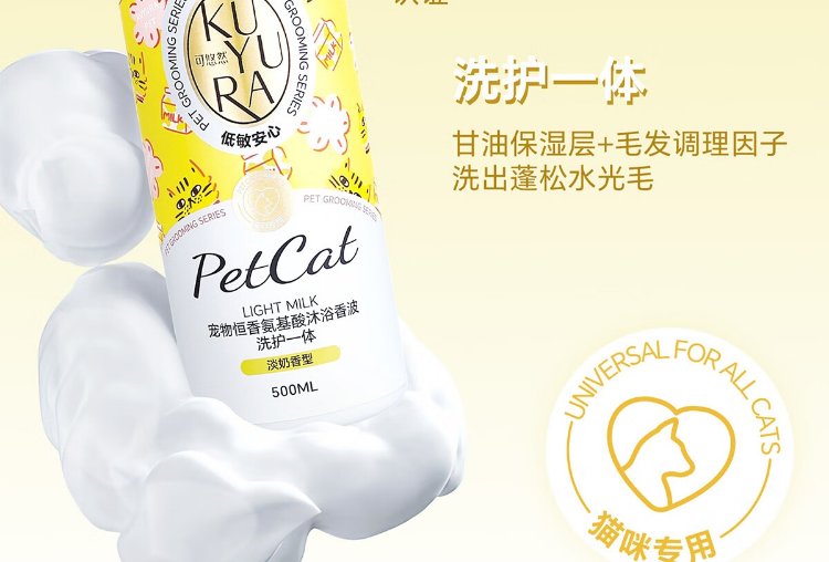 Keyouran cat shower gel pet shampoo fluffy hair gentle skin care all-in-one light milk fragrance 500ml