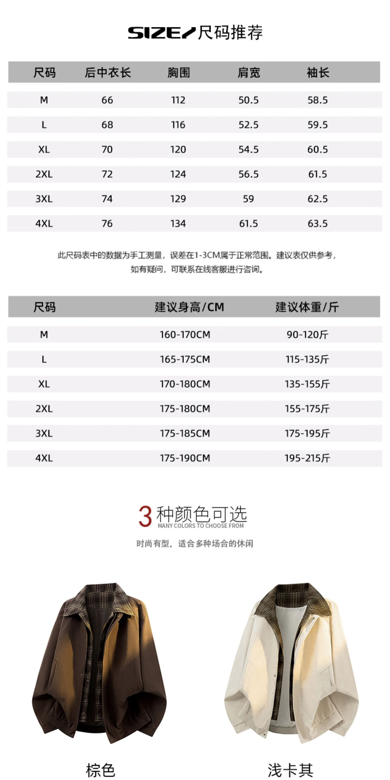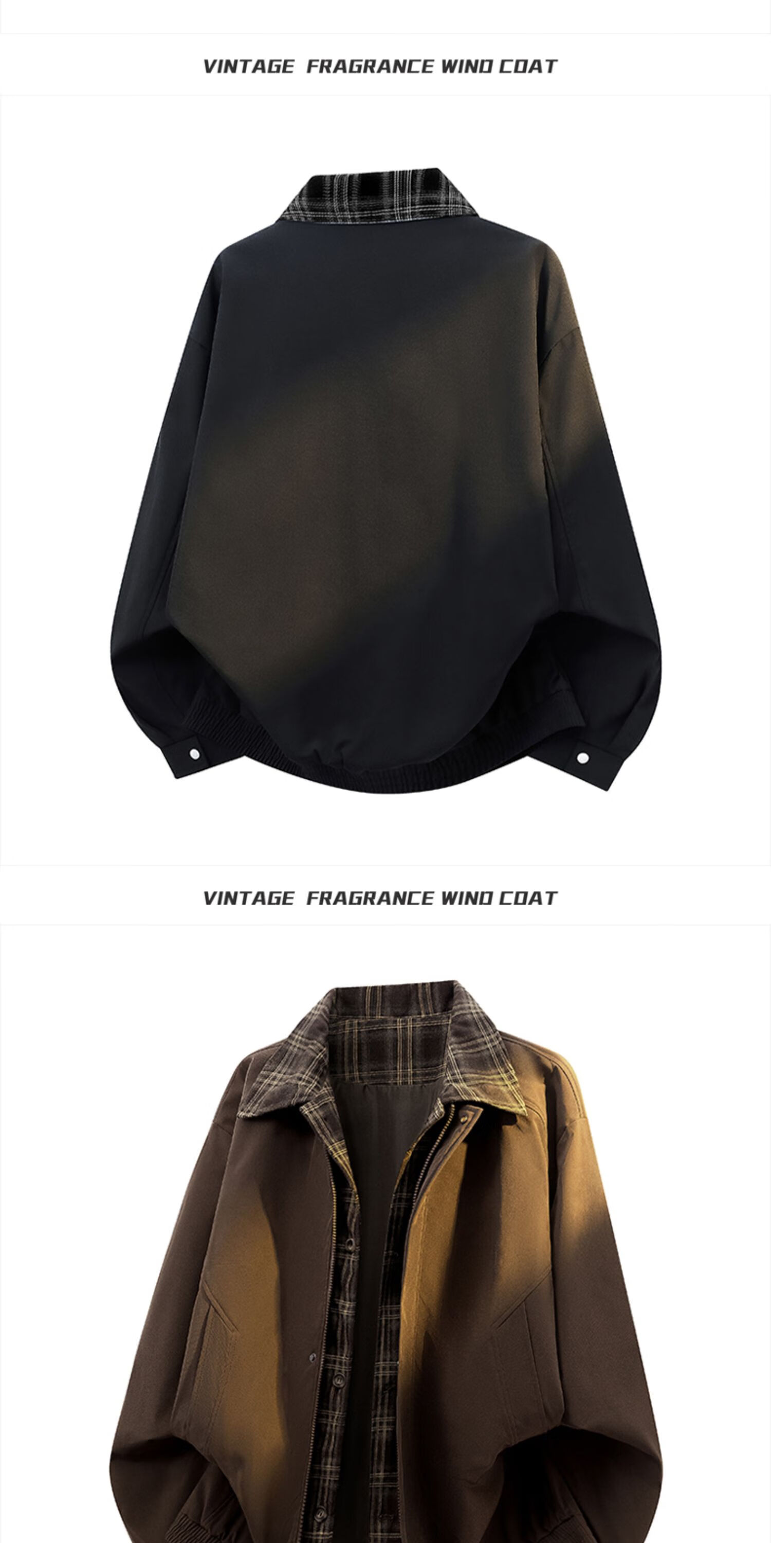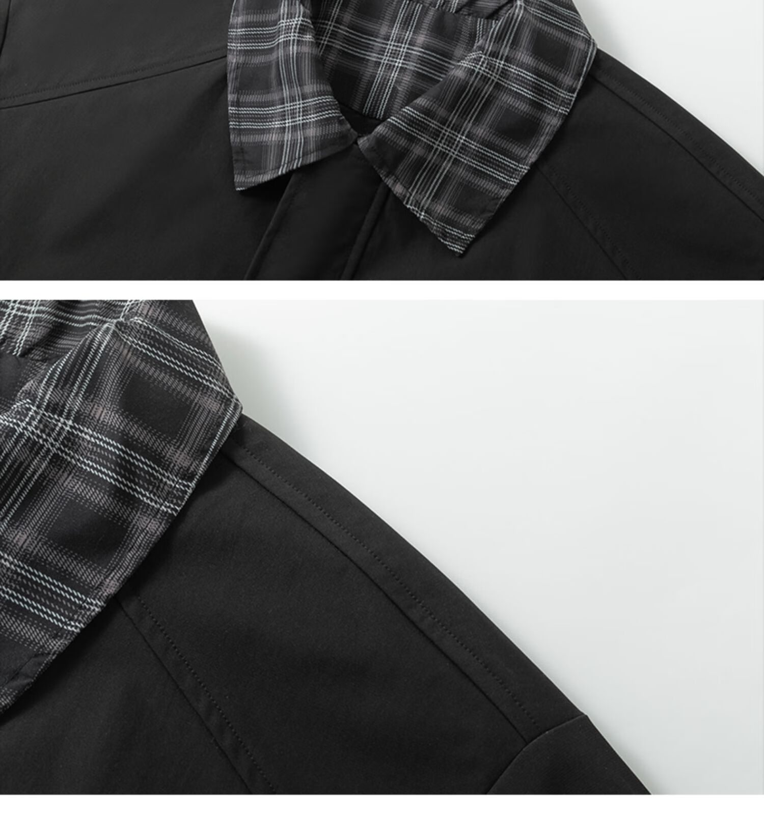 Dingfengbaoluo fake two-piece plaid jacket men's autumn American loose casual retro top jacket XYL02 black L