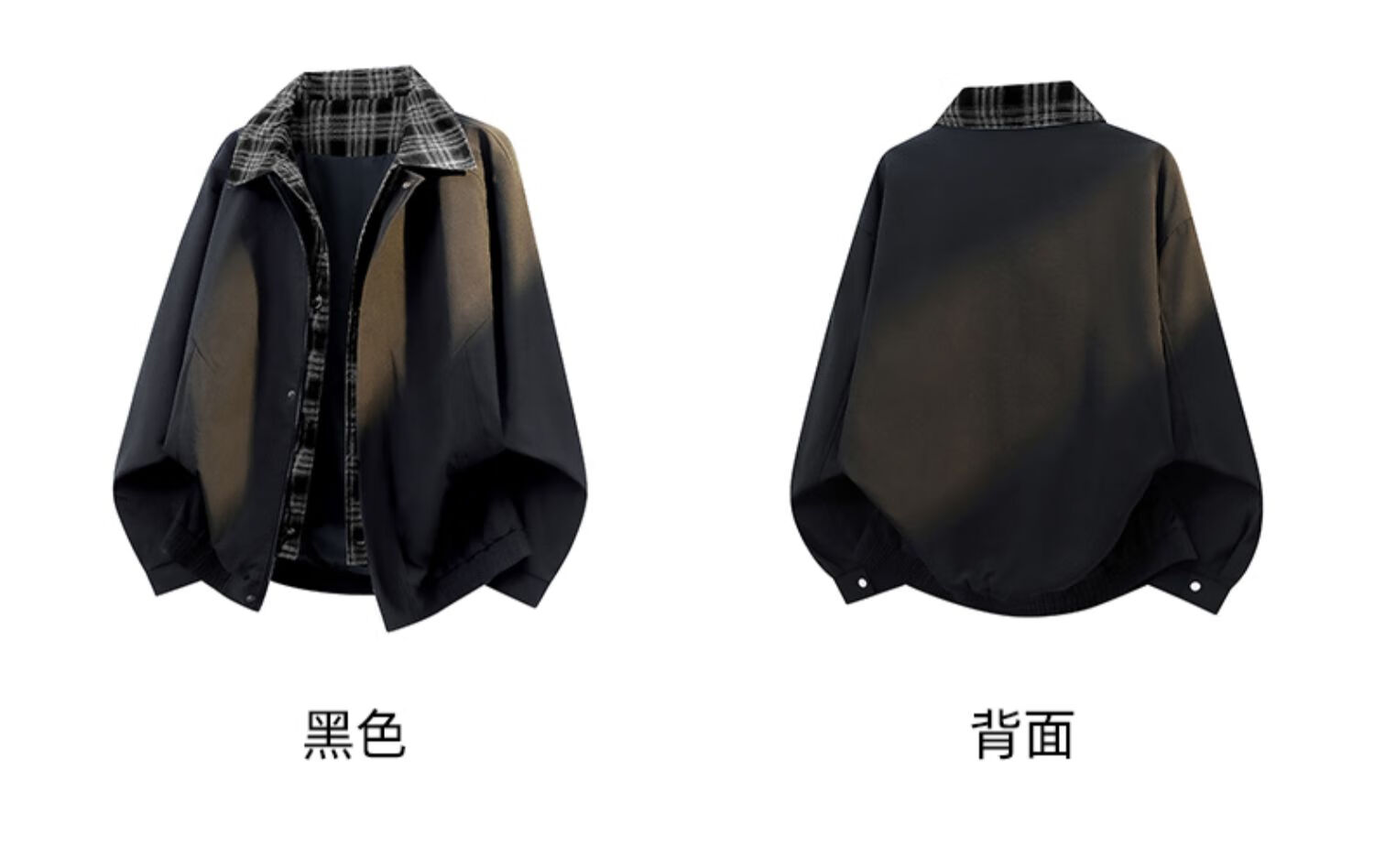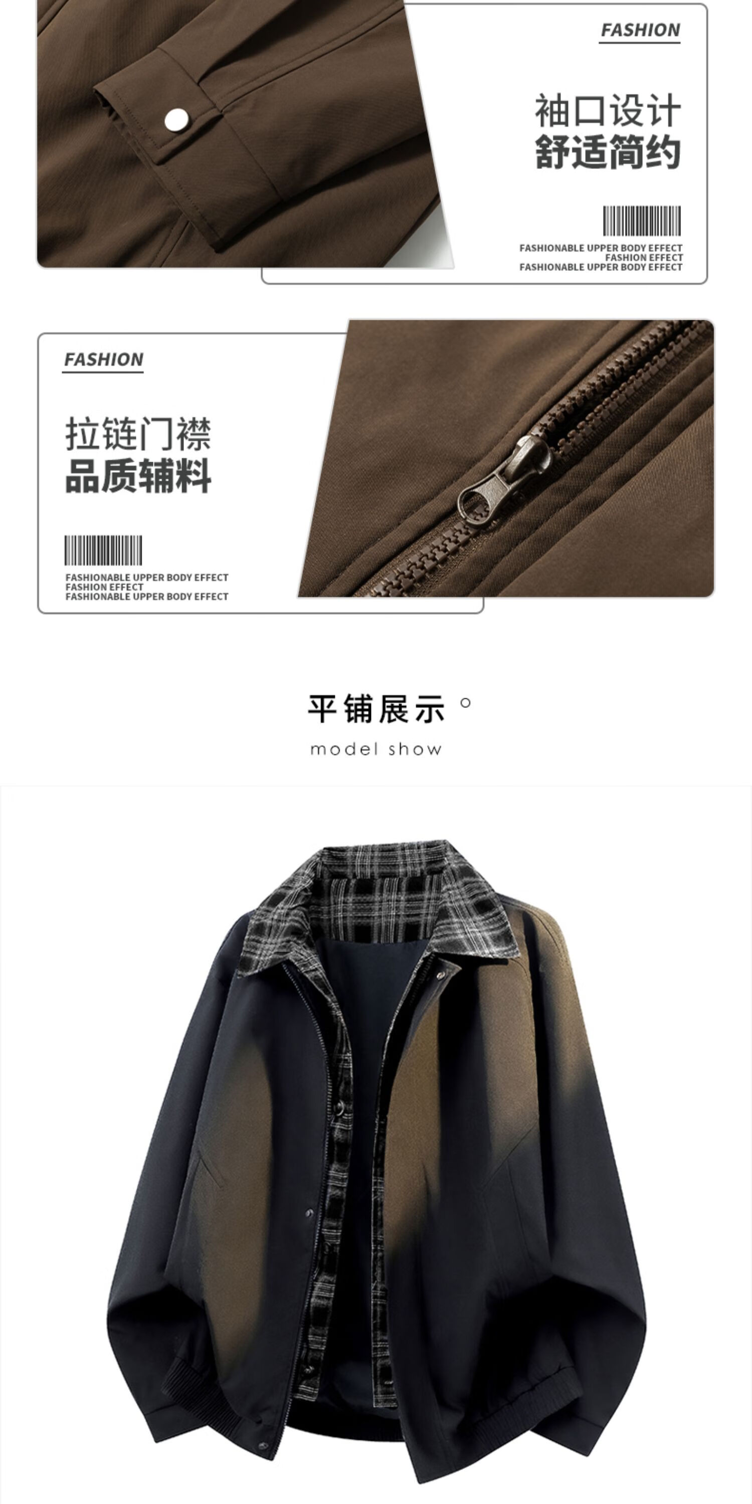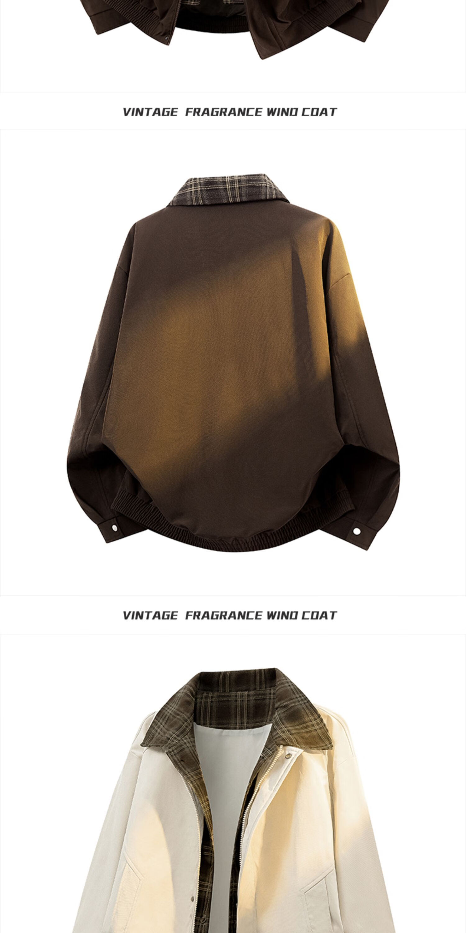 Dingfengbaoluo fake two-piece plaid jacket men's autumn American loose casual retro top jacket XYL02 black L