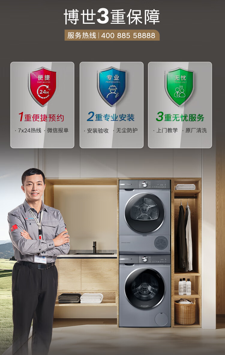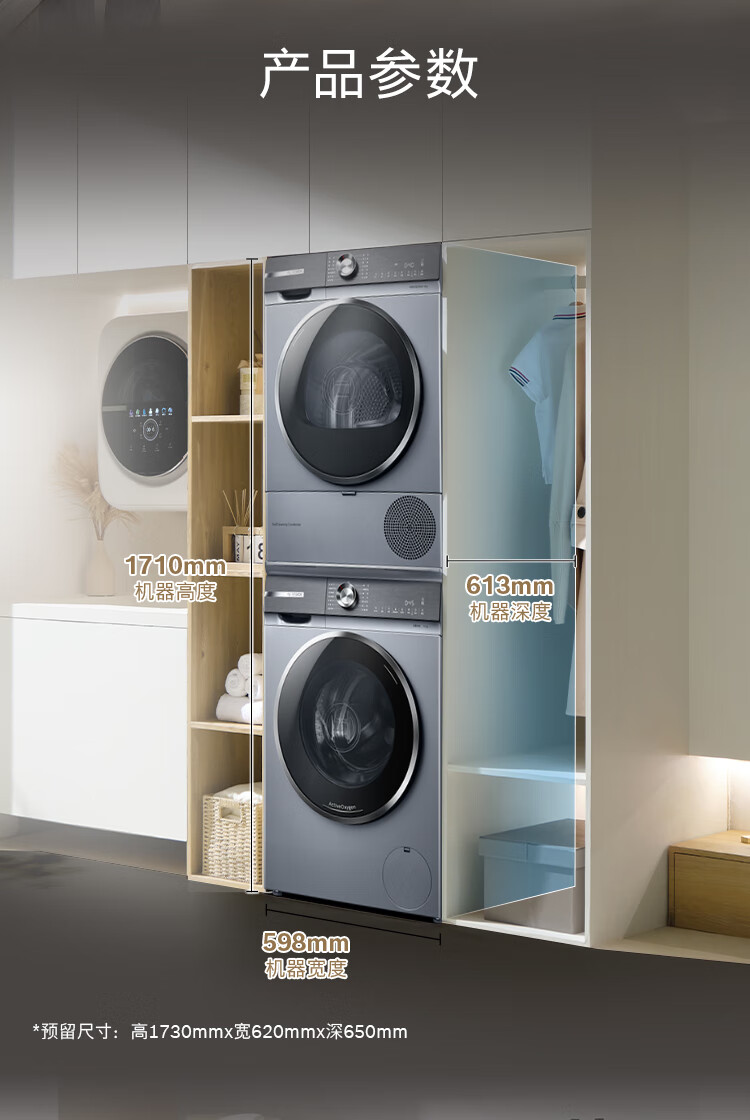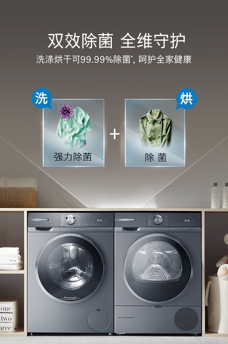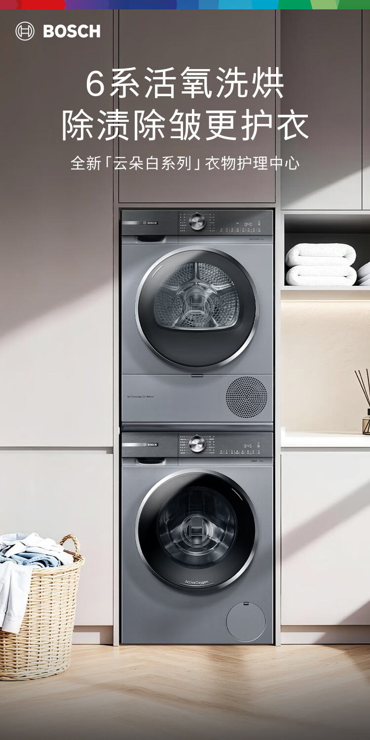 Bosch Yunduobai Clothing Care Center 6 Series Active Oxygen Intelligent Delivery Drum Washing and Drying Set WGA254D80W+WQA254DS0W National Subsidy 20%