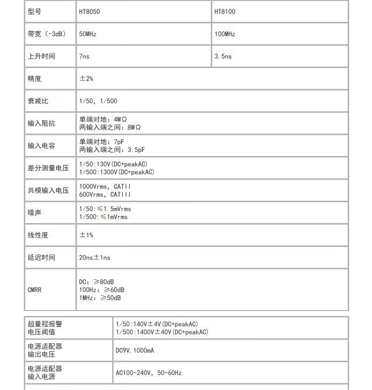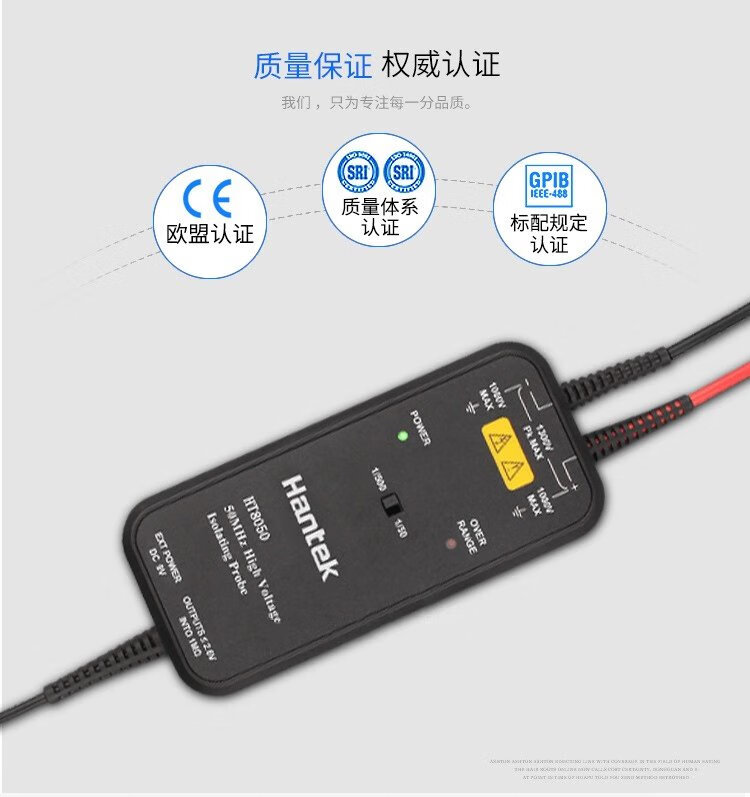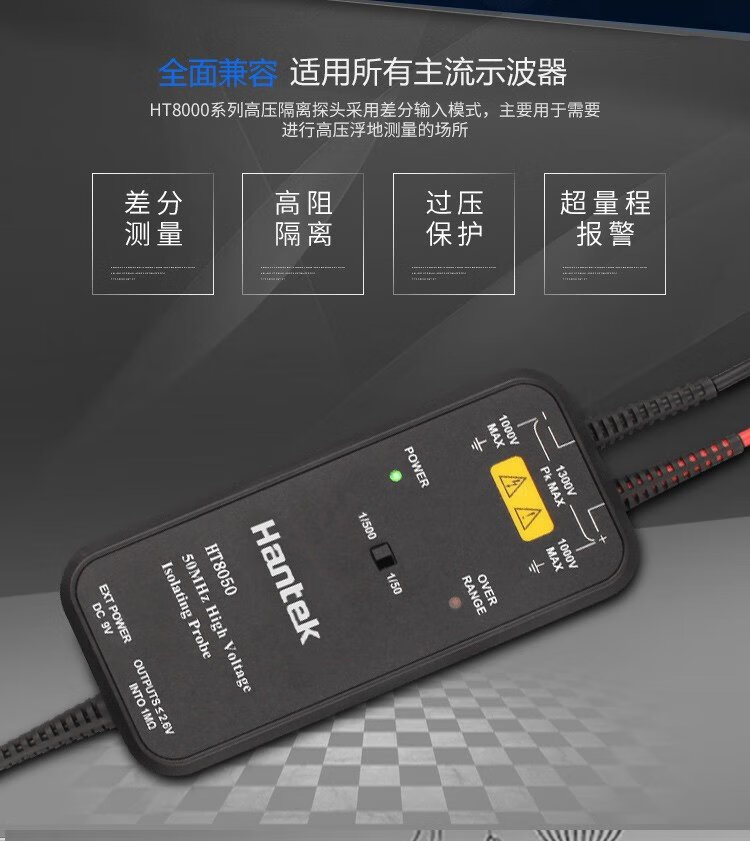 Hantek HT8100 oscilloscope high voltage isolation probe differential probe bandwidth 100MHz