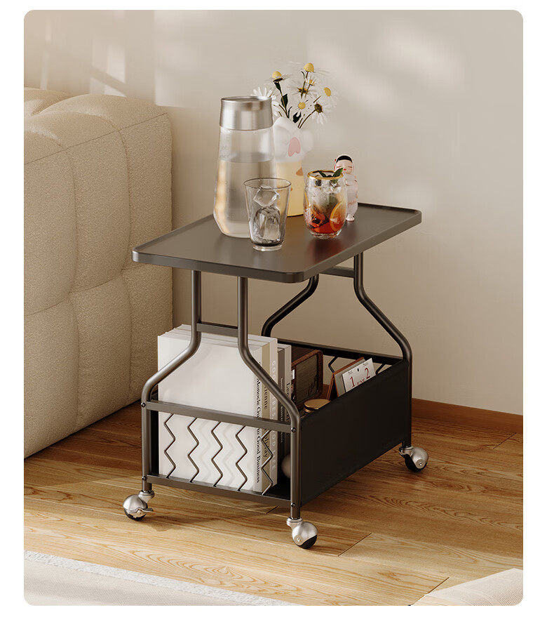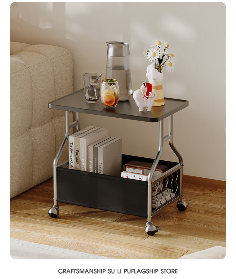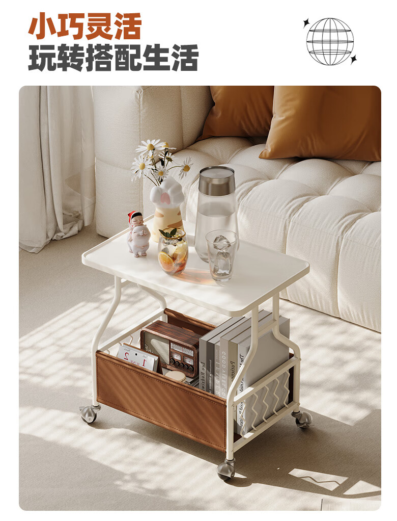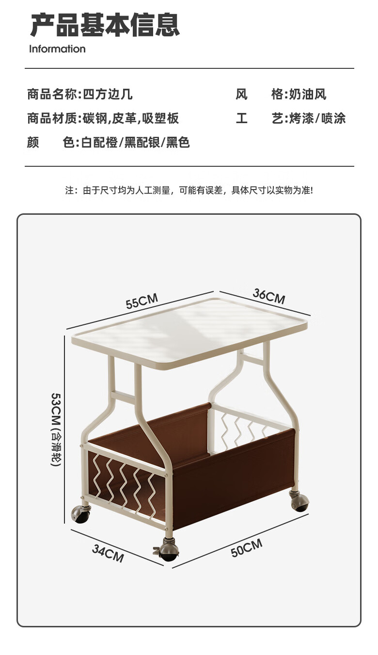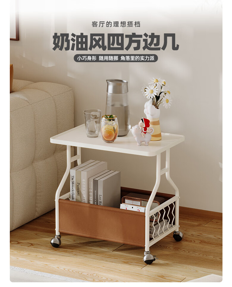 KUKA Cream Movable Side Table with Storage Living Room Matching DS3466XJ Square Side Table White Frame/Brown 55*53