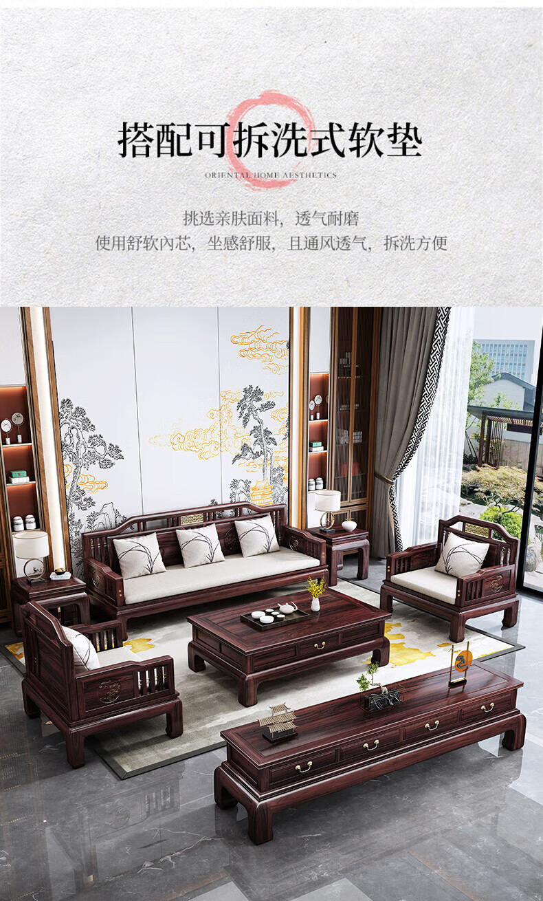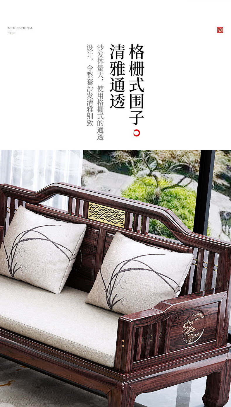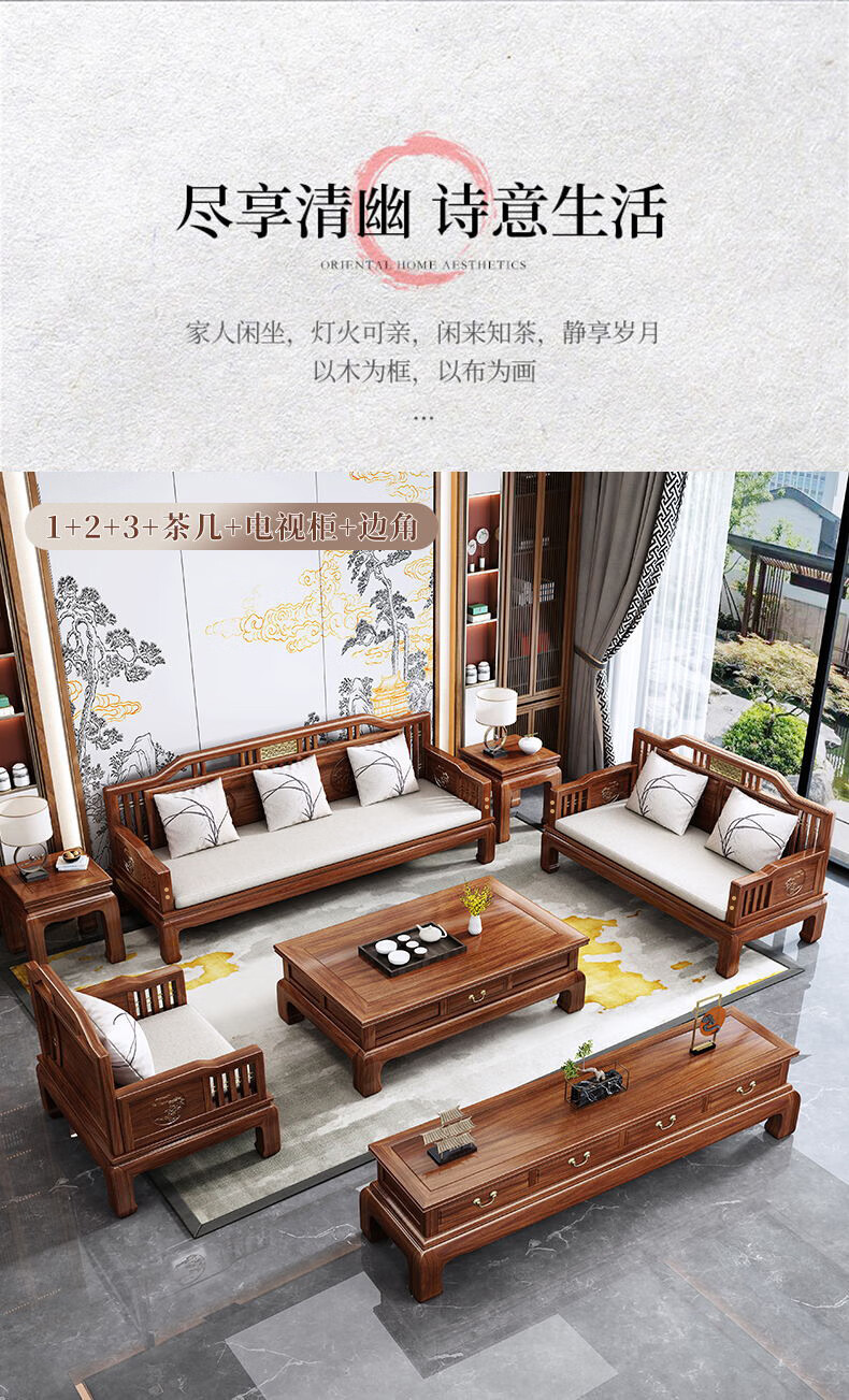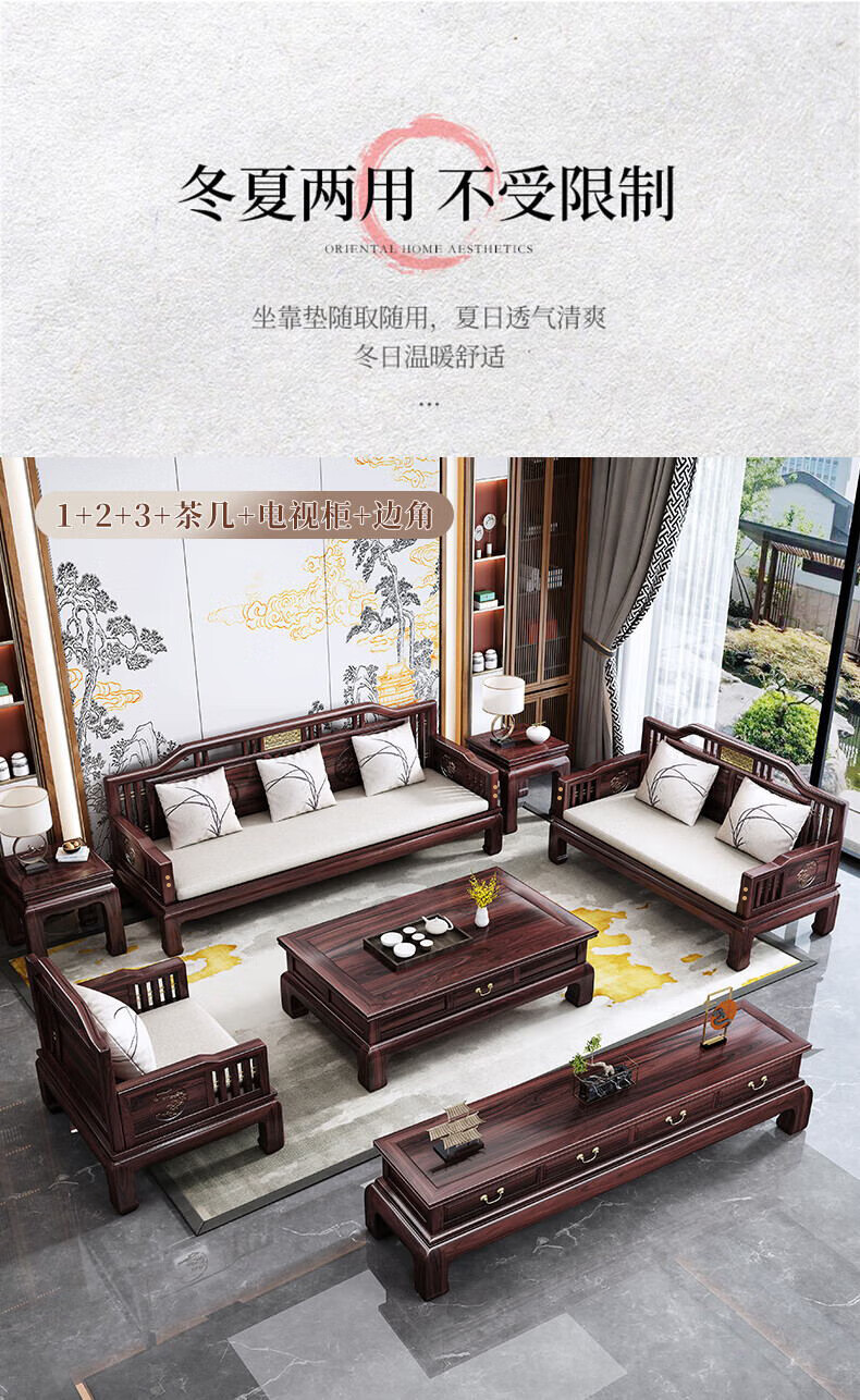Jiangcheng solid wood sofa new Chinese style combination winter and summer sofa combination modern Chinese style classical style sofa 808#