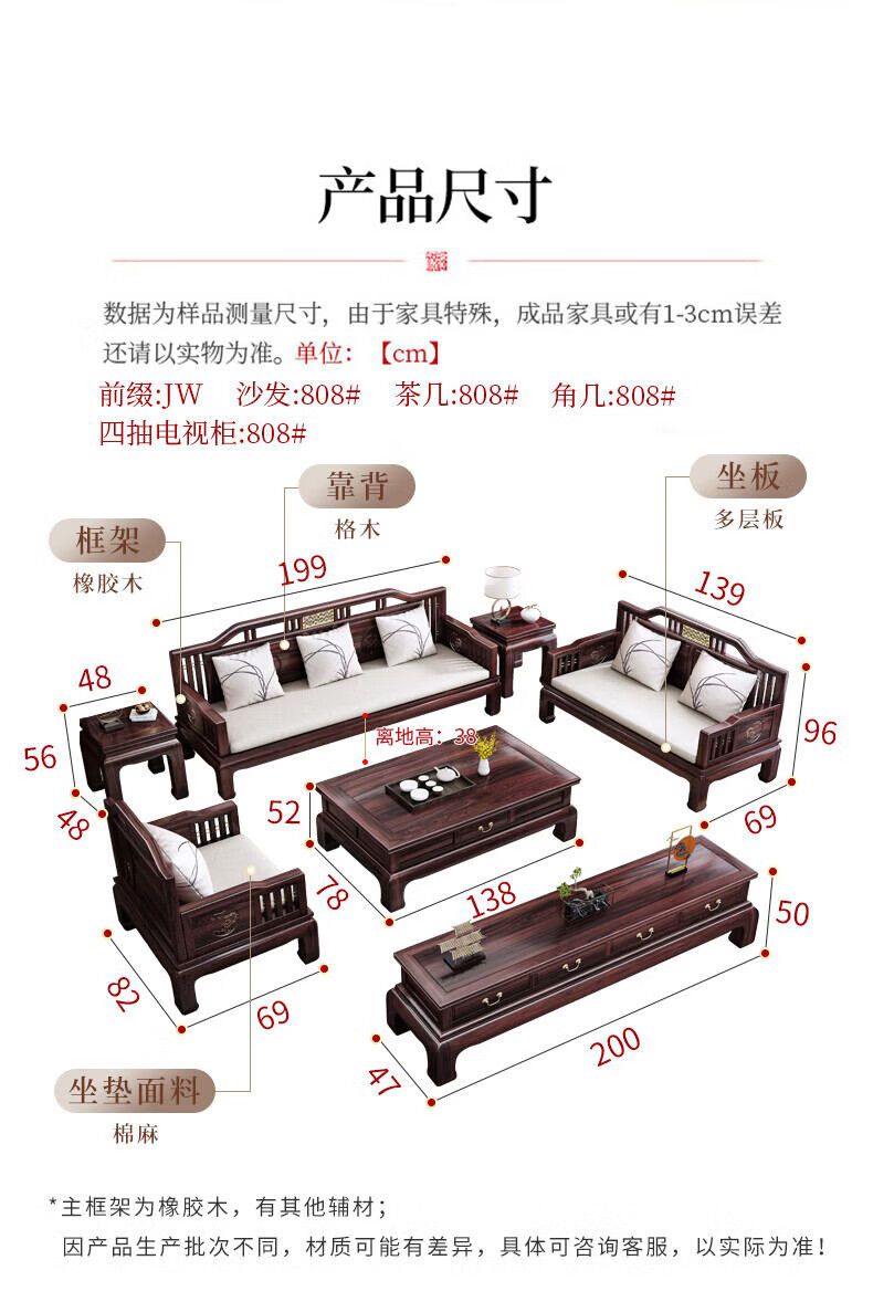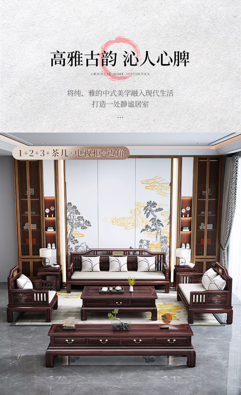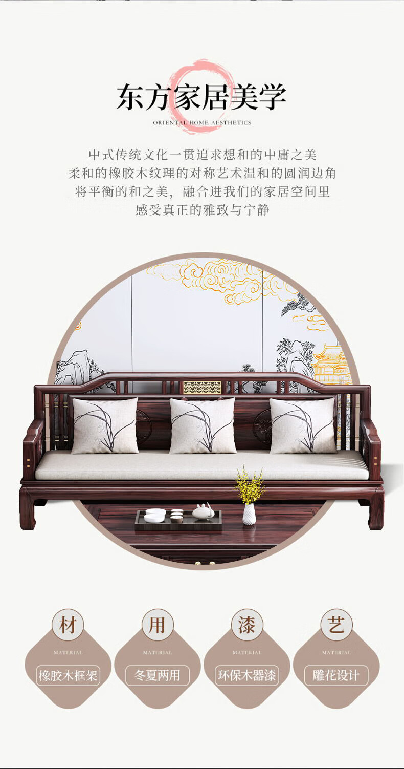 Jiangcheng solid wood sofa new Chinese style combination winter and summer sofa combination modern Chinese style classical style sofa 808#