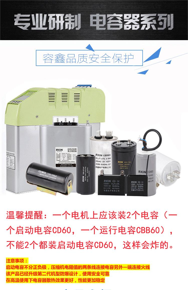 RXiN Rongxin CD60 450VAC 400uf cable type single-phase motor starting capacitor suitable for water pumps/motors/air compressors/cranes, etc.