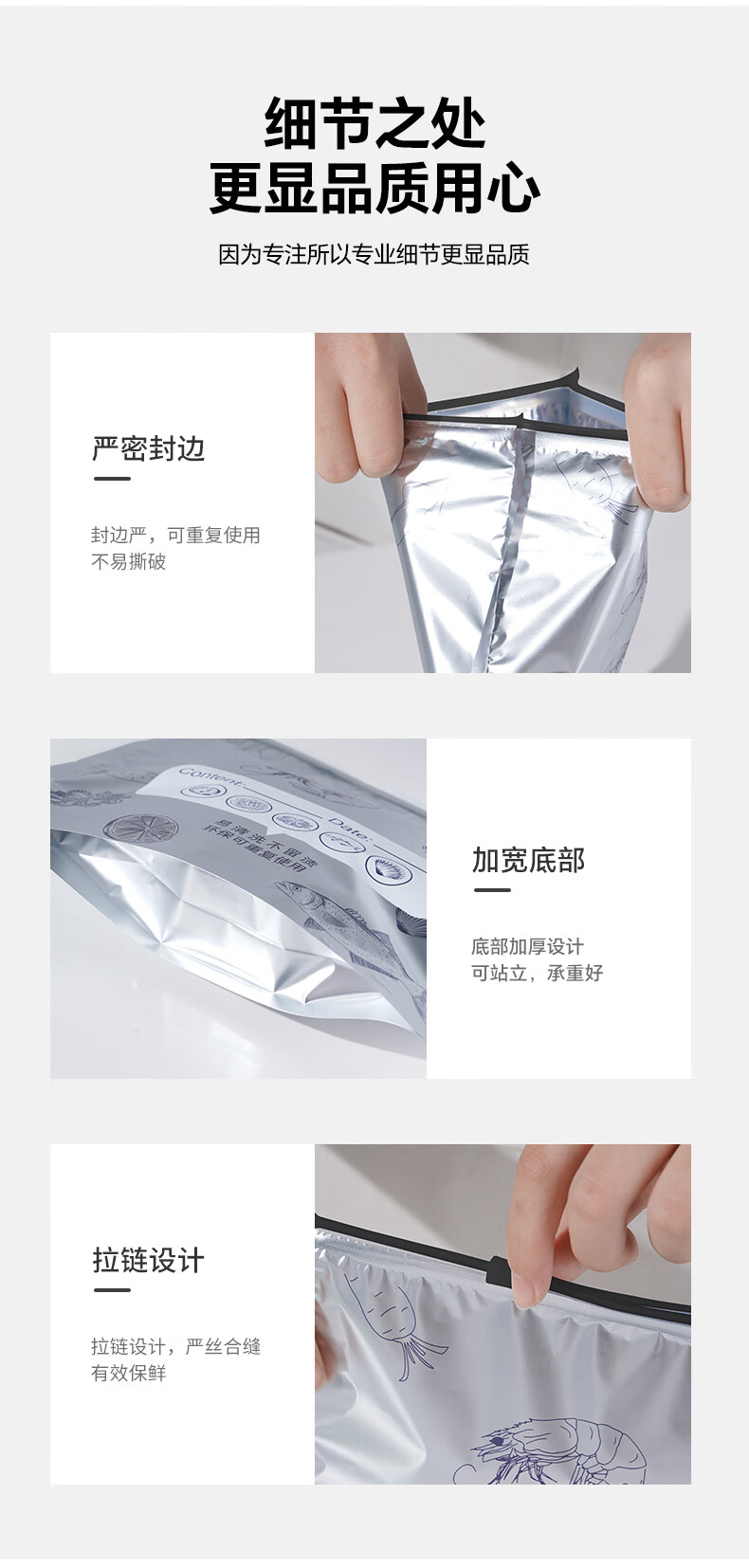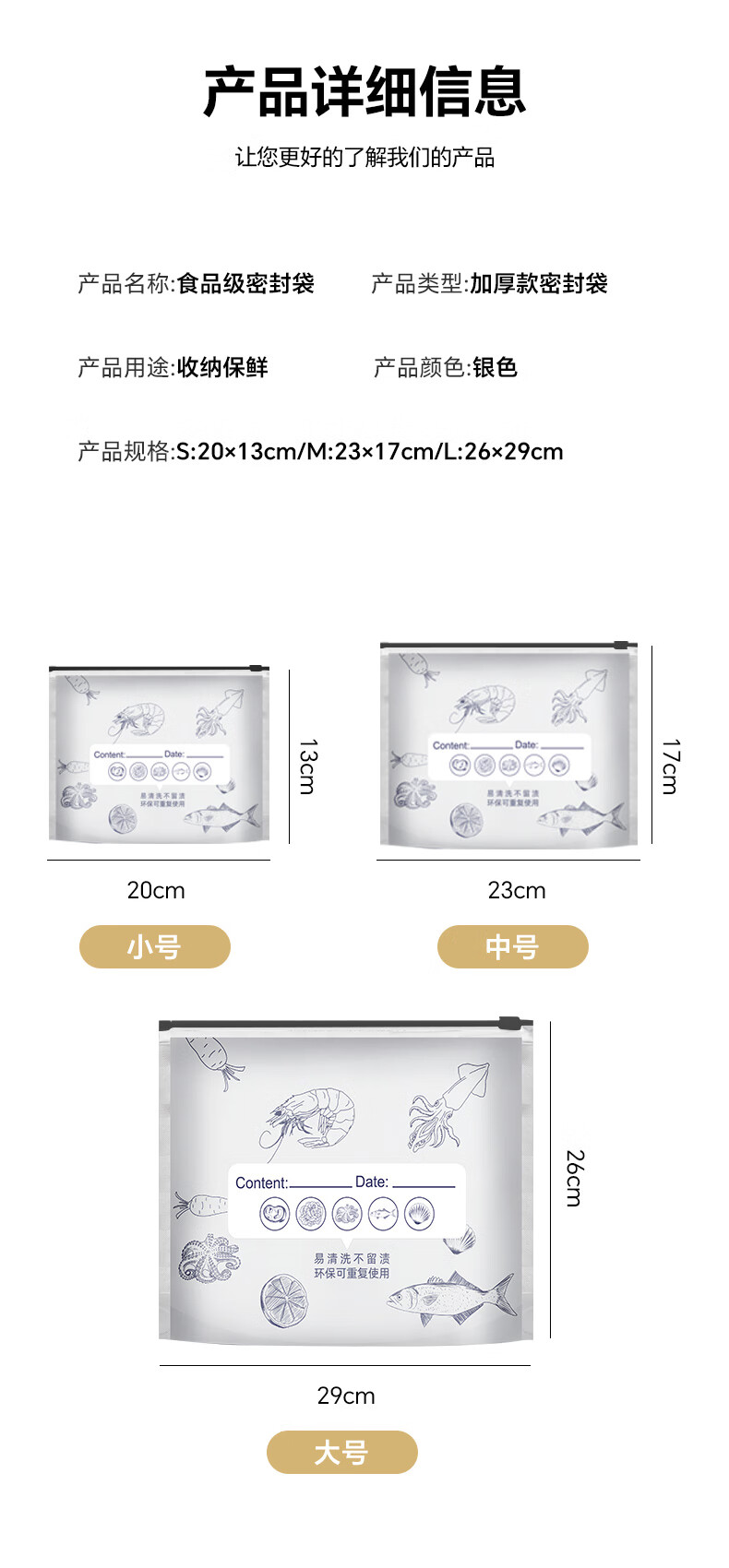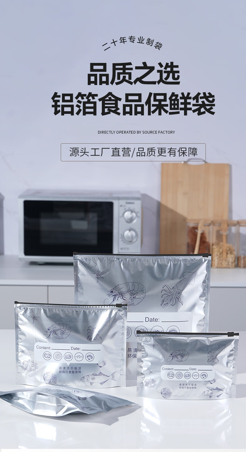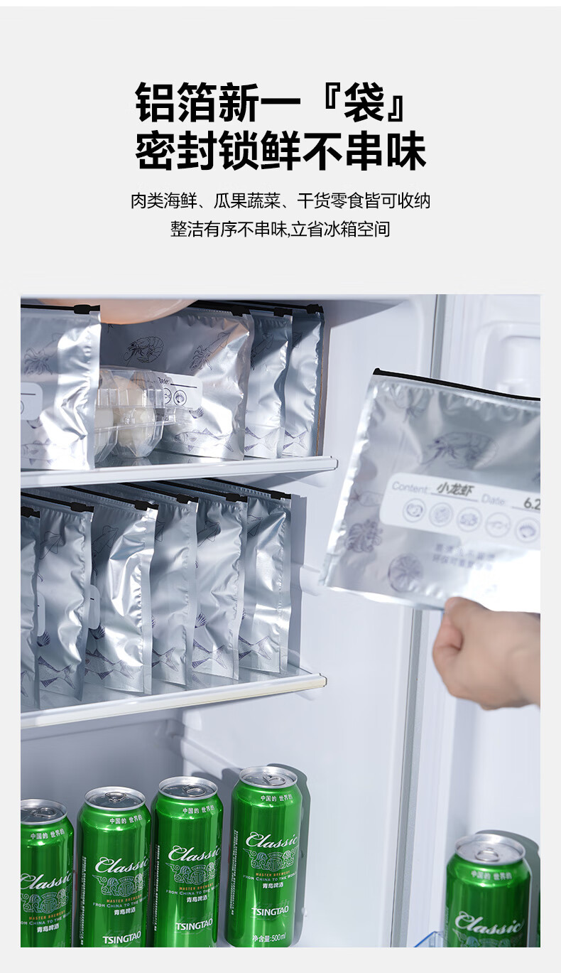 Netno aluminum foil fresh-keeping bag food grade dense bag antibacterial ziplock bag refrigerator food refrigeration and freezer storage bag 99.9% antibacterial small size 20 pieces