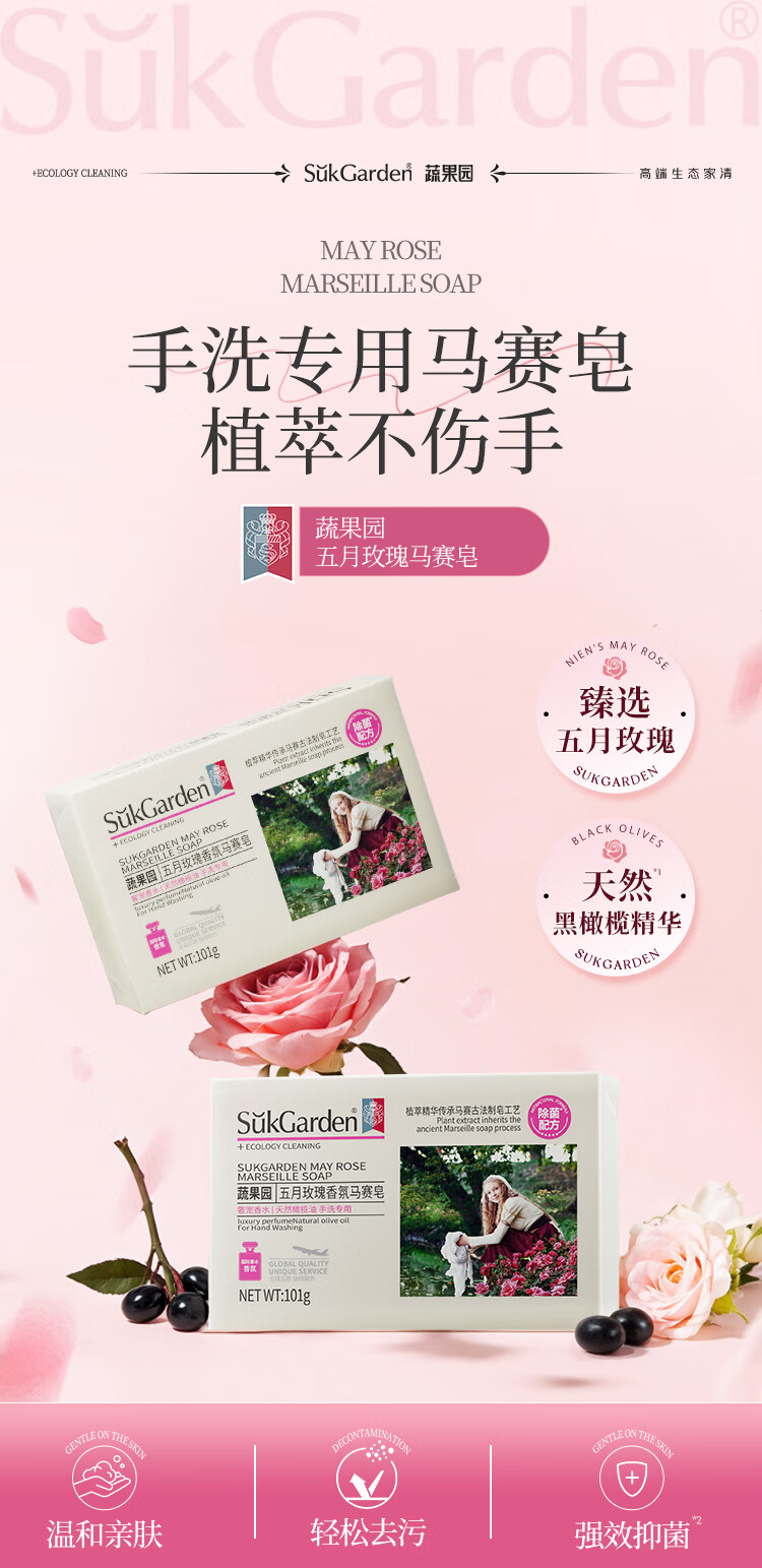 Fruit and vegetable garden laundry soap underwear soap rose scented Marseille soap 101g washing underwear laundry detergent antibacterial and sterilizing unisex