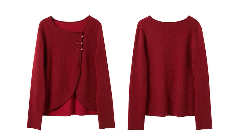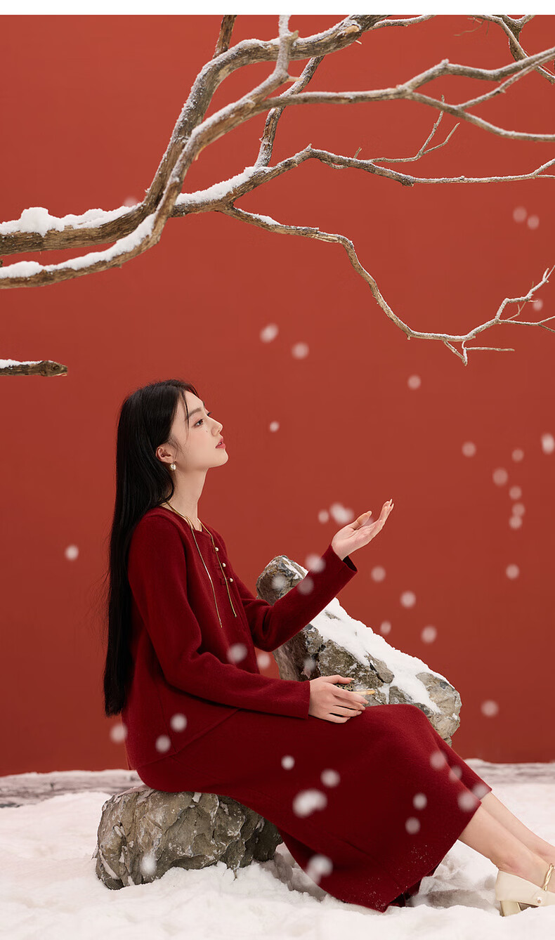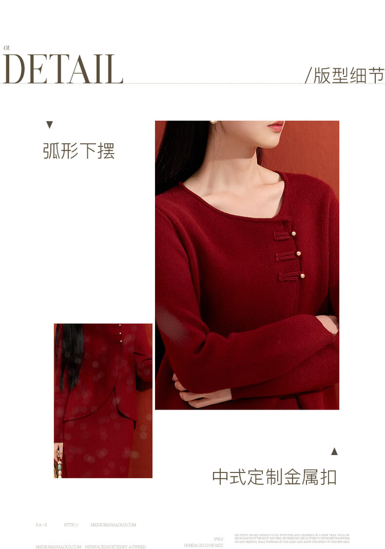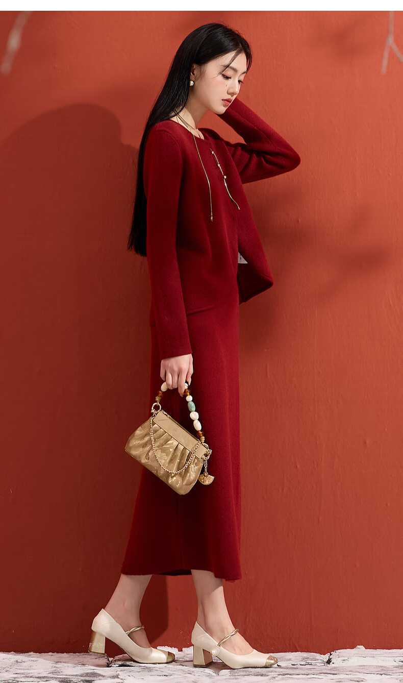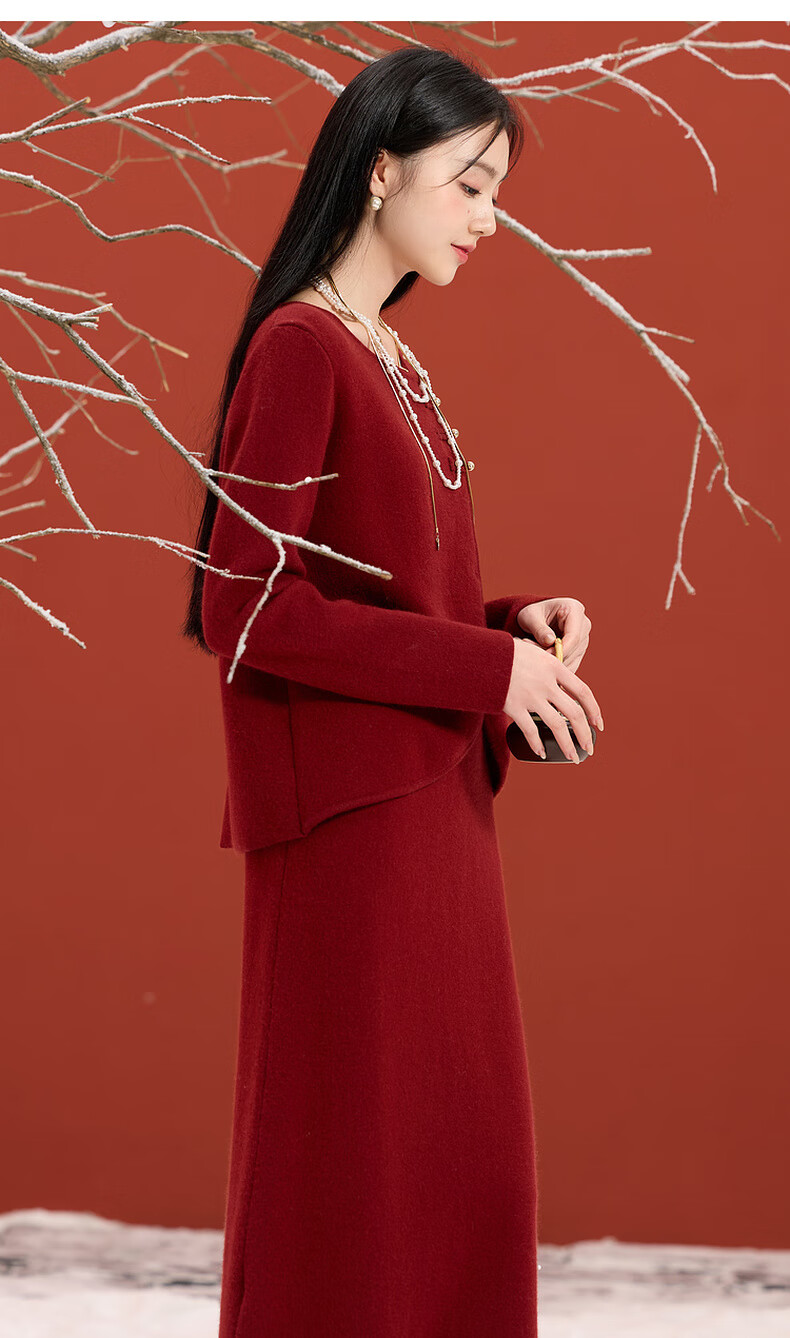 Sancai 2025 winter new Chinese style lucky red knitted suit sweater high waist skirt two-piece set M