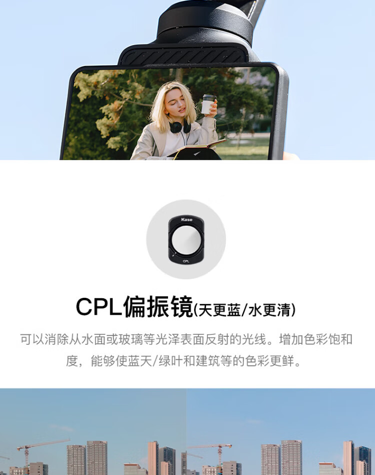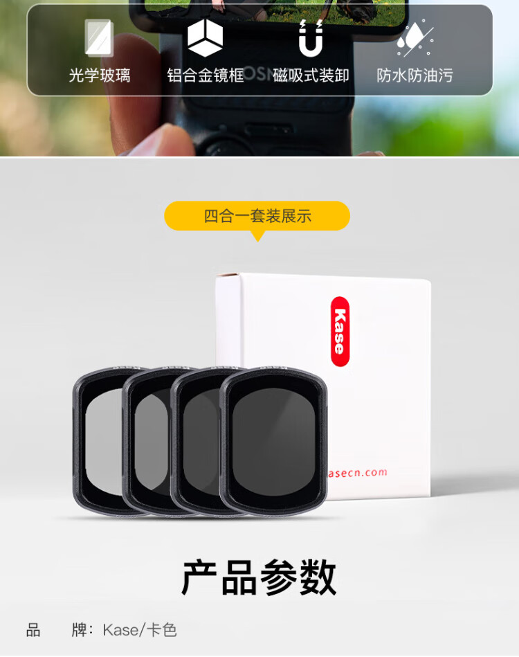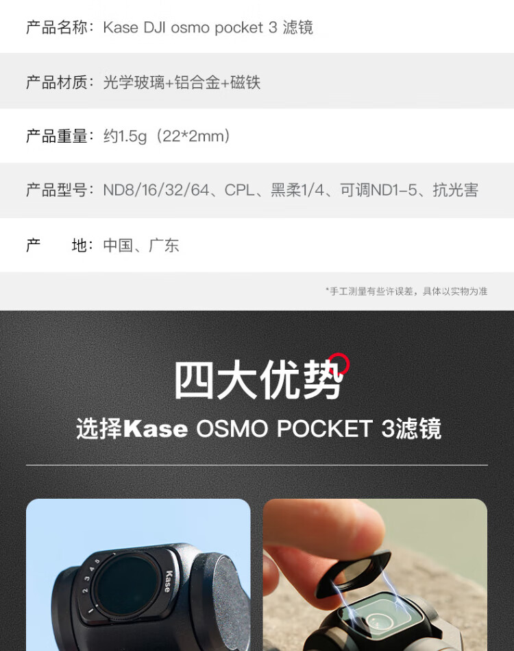 Kase DJI DJI pocket3 filter set Pocket action camera special filter set Heiro 1/4+CPL polarizer+adjustable ND2-32