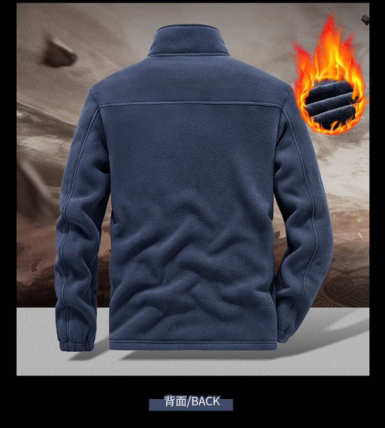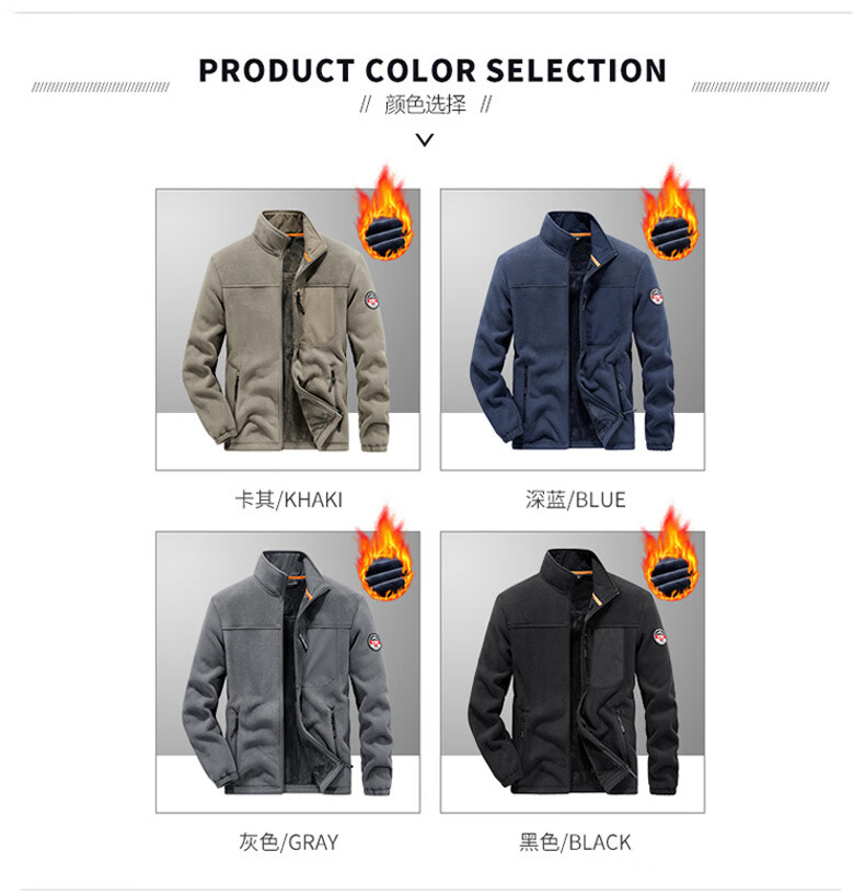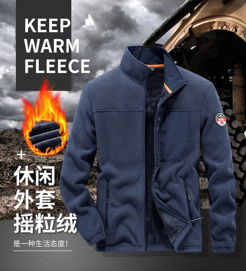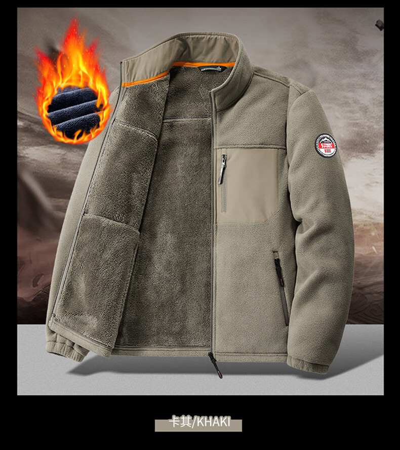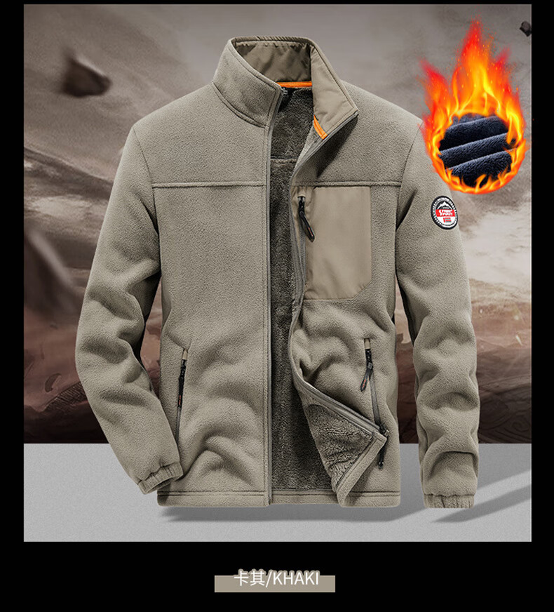 Cat Man Jacket Men's Autumn and Winter Youth and Middle-aged Outdoor Leisure Sports Polar Fleece Warm Top Jacket Khaki XL