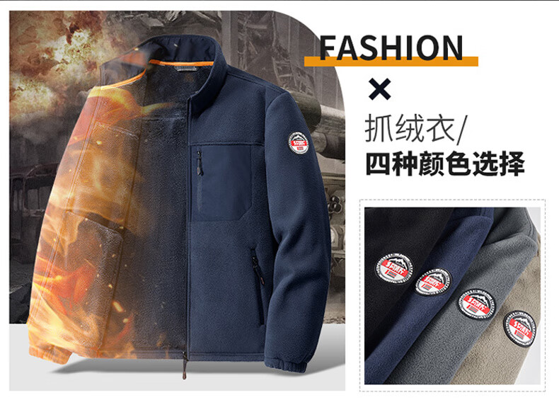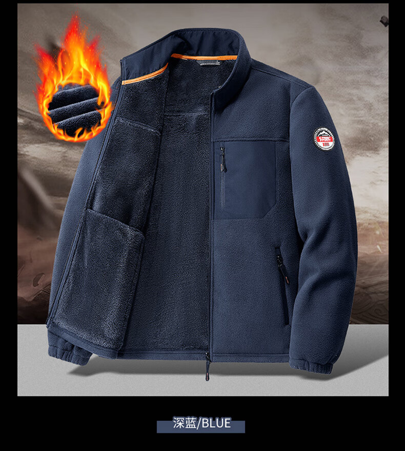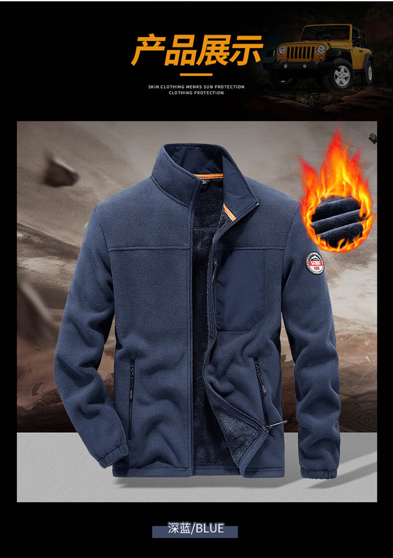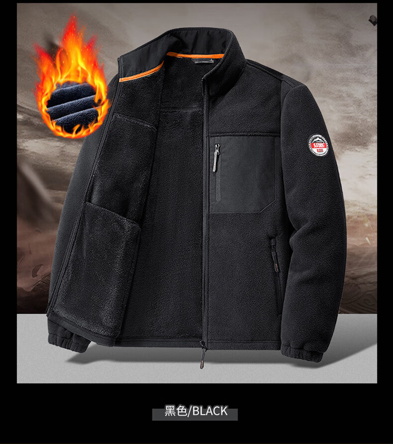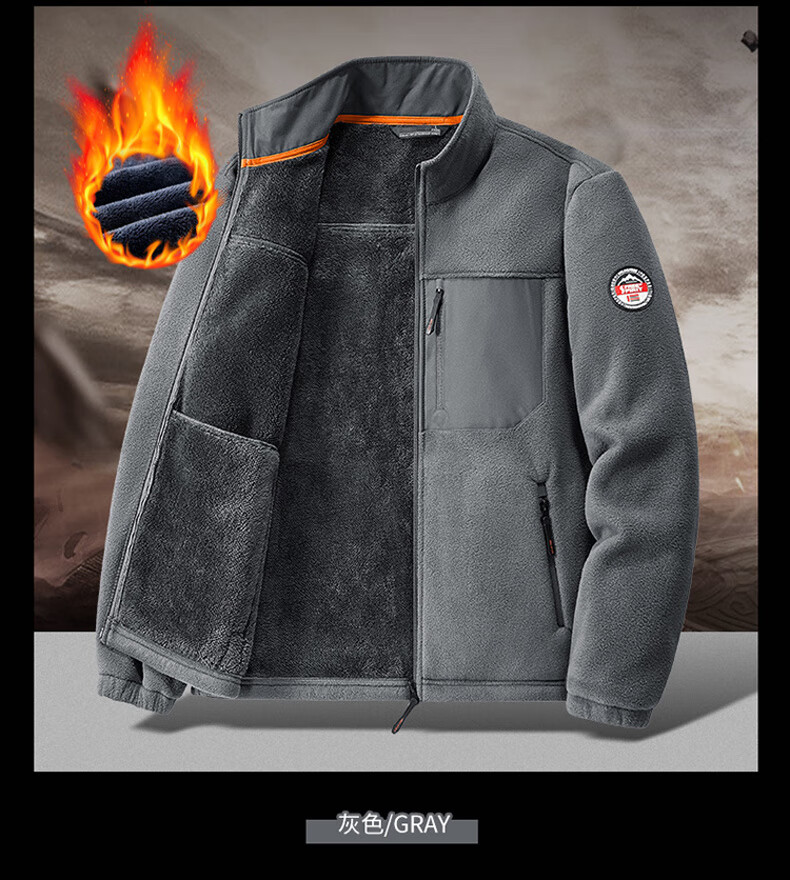 Cat Man Jacket Men's Autumn and Winter Youth and Middle-aged Outdoor Leisure Sports Polar Fleece Warm Top Jacket Khaki XL