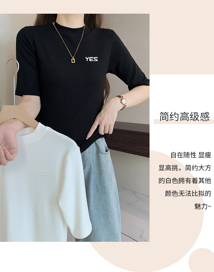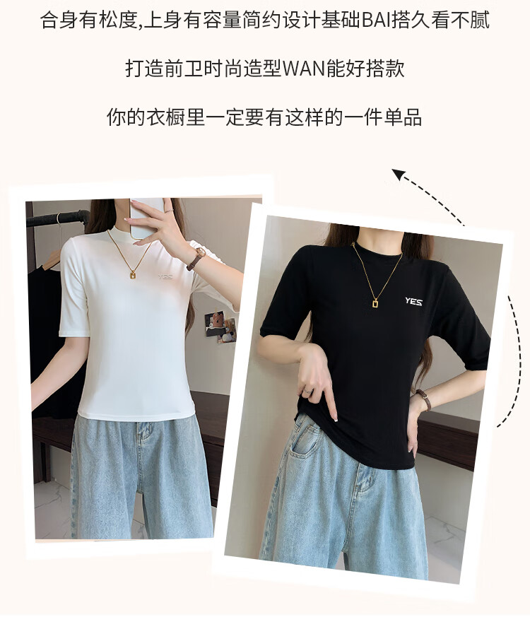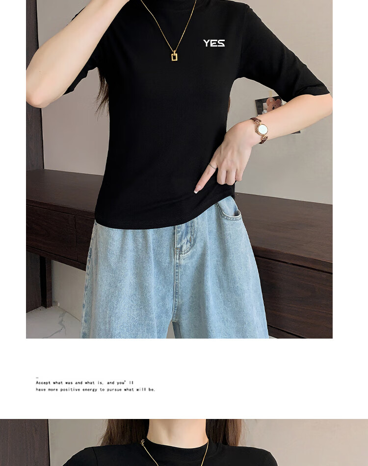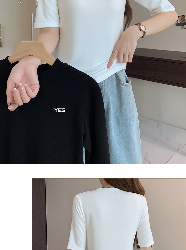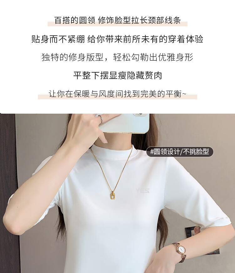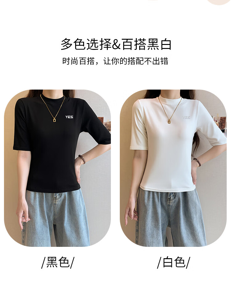 Yiershuang high-end early autumn new style stand-up collar women's inner wear mid-sleeve tops shoulder T-shirt temperament solid color bottoming shirt