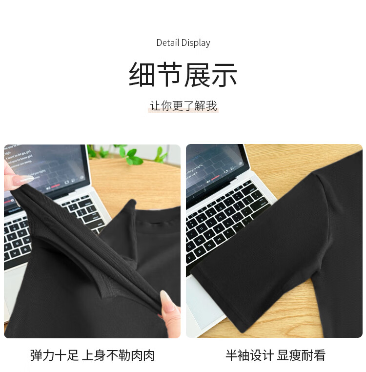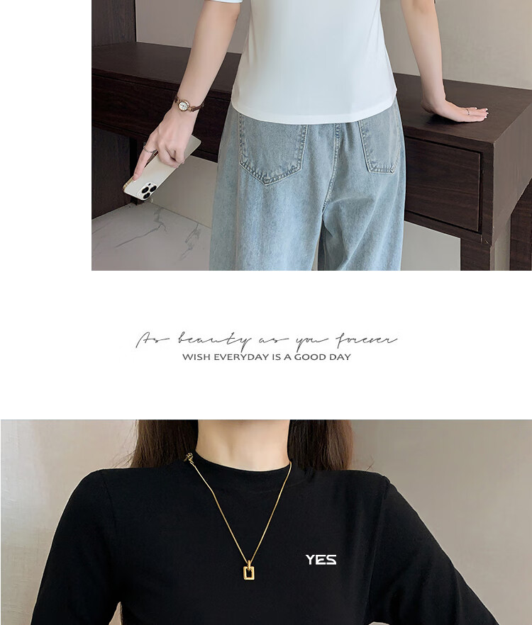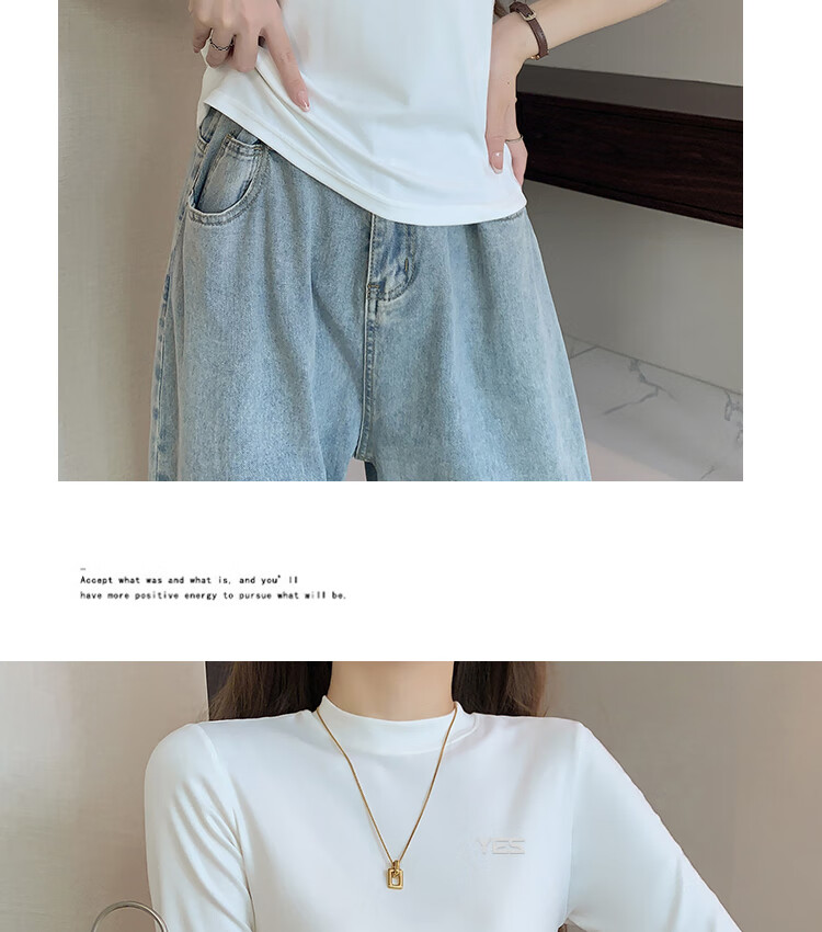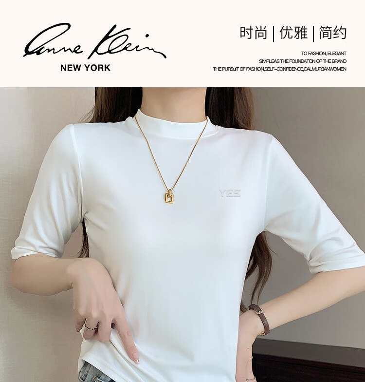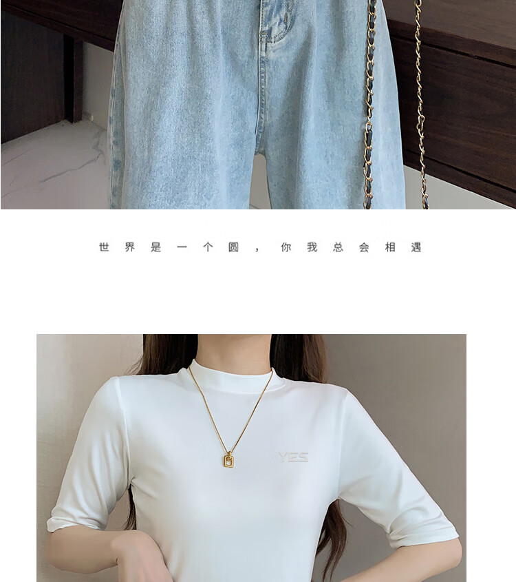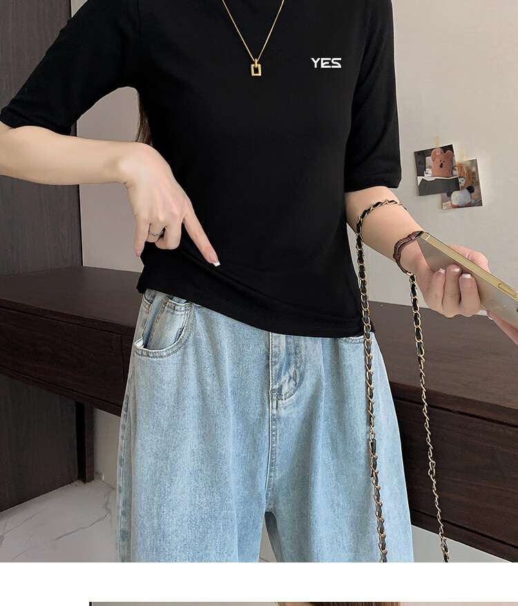 Yiershuang high-end early autumn new style stand-up collar women's inner wear mid-sleeve tops shoulder T-shirt temperament solid color bottoming shirt