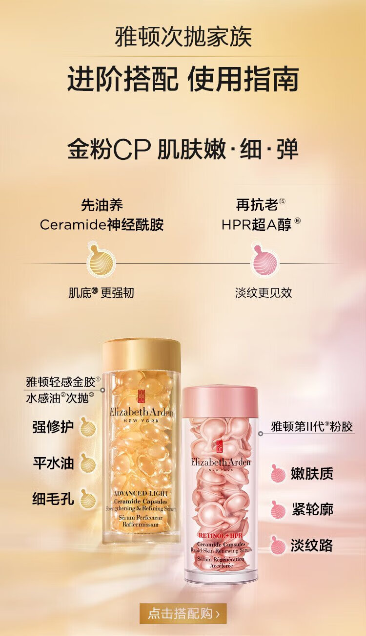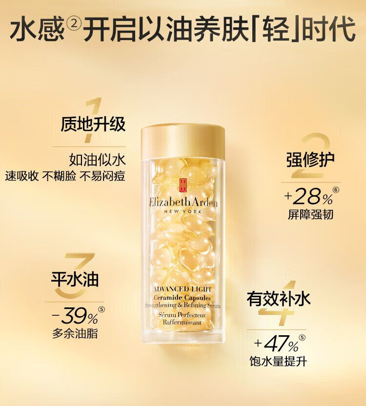 Elizabeth Arden Light Touch Gold Colloid Time and Space Revitalizing Clear Repair Essence 28ml, about 60 capsules, water-based oil, on clearance.
