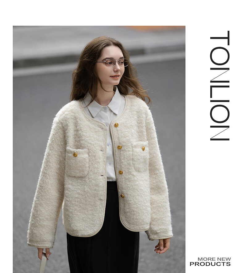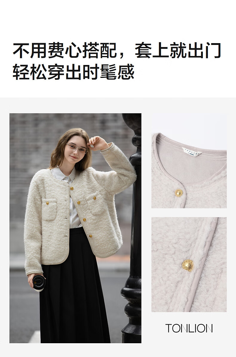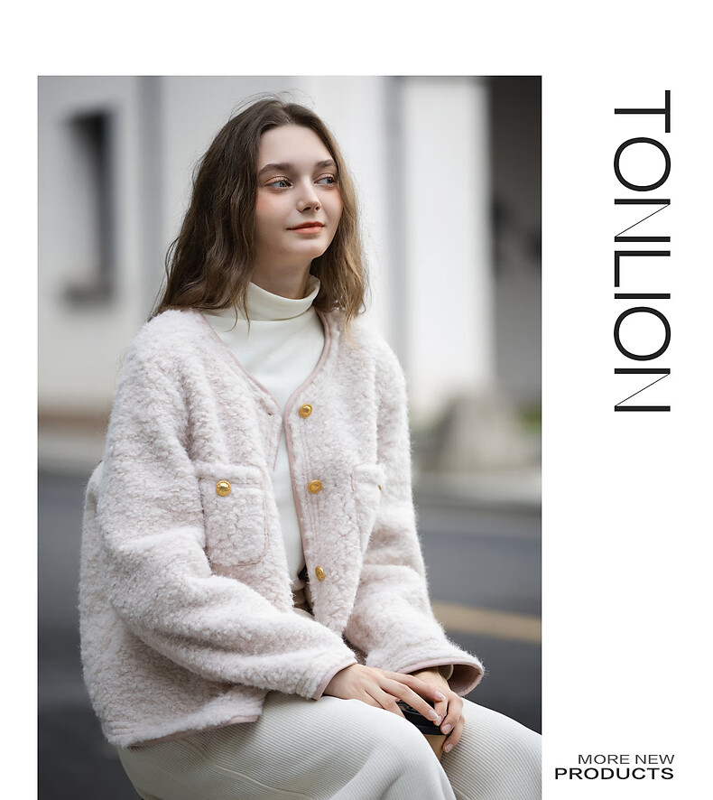 TonLion 2025 Winter Women's Imitation Lamb Hair Small Fragrance Style Short Jacket