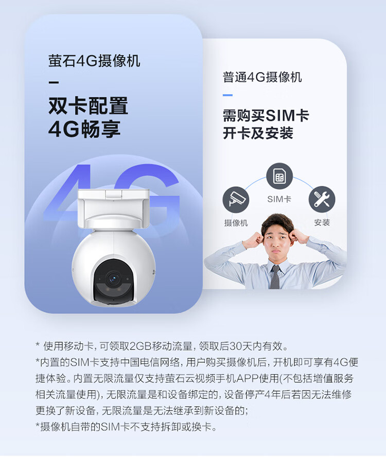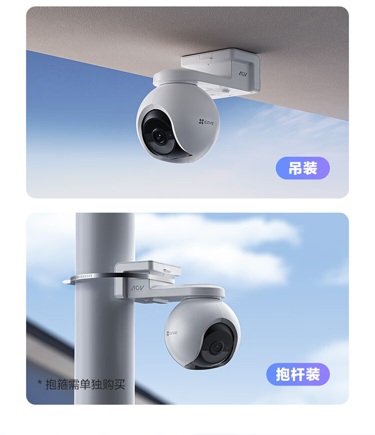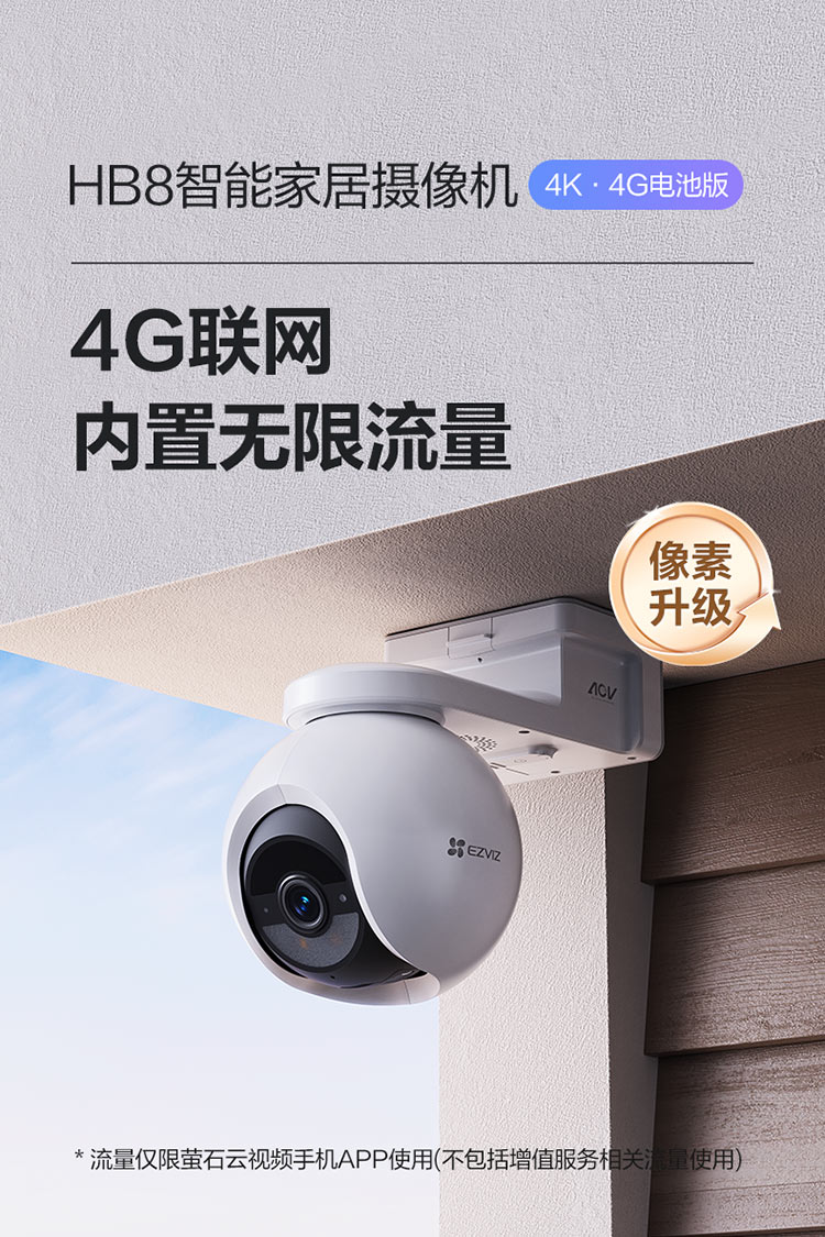 EZVIZ HB8 8 million 4K ultra-clear pixels, solar pan/tilt, outdoor 4G camera, built-in unlimited traffic, home battery smart camera, no need to plug in