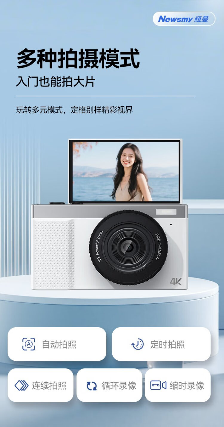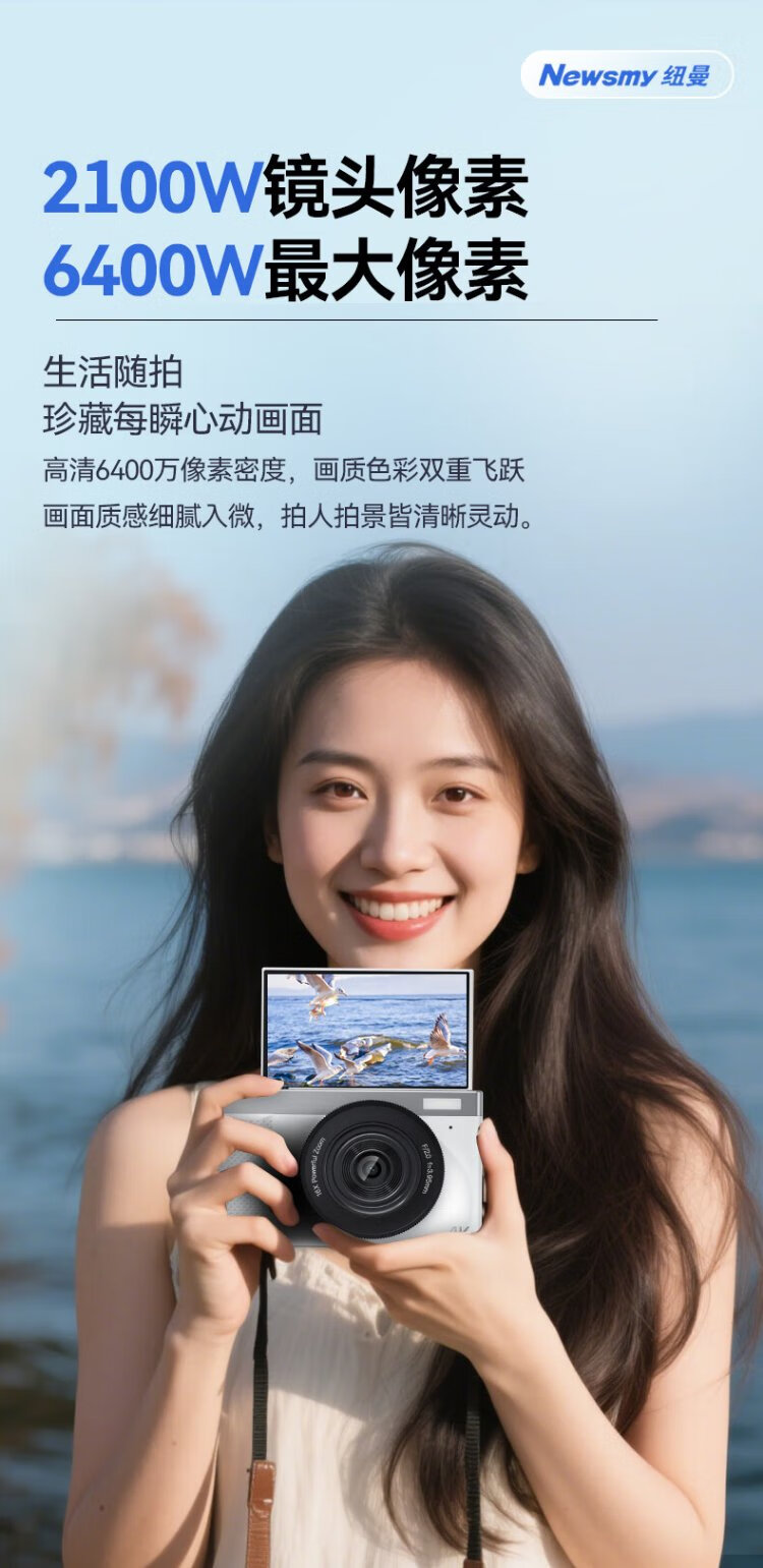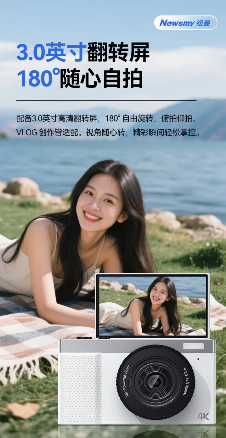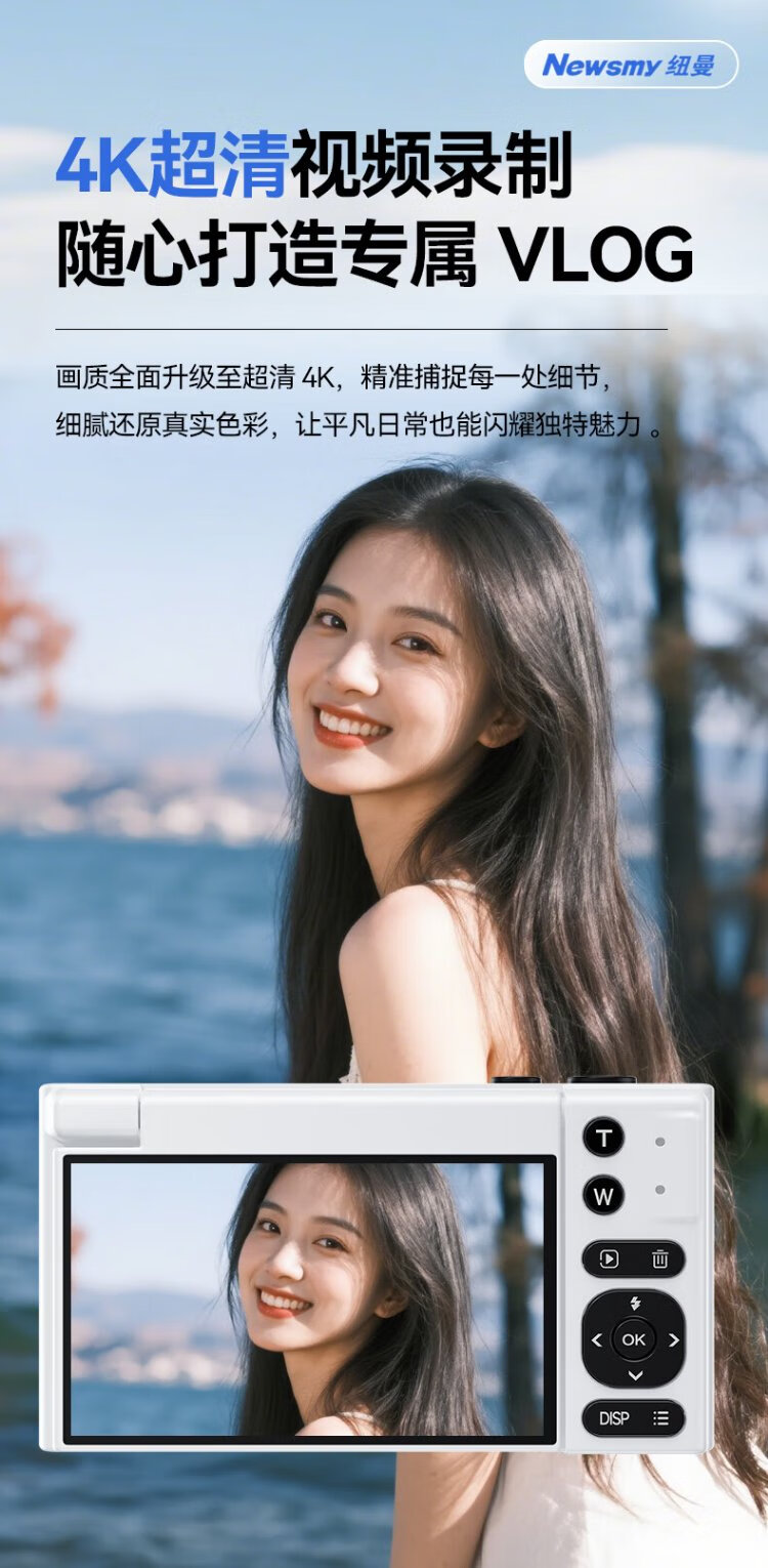 Newman (Newsmy) N8 digital camera student party ccd flip screen selfie high-definition pixel campus photo travel dedicated entry-level micro-single beauty filter girl birthday gift 128G + wide-angle lens