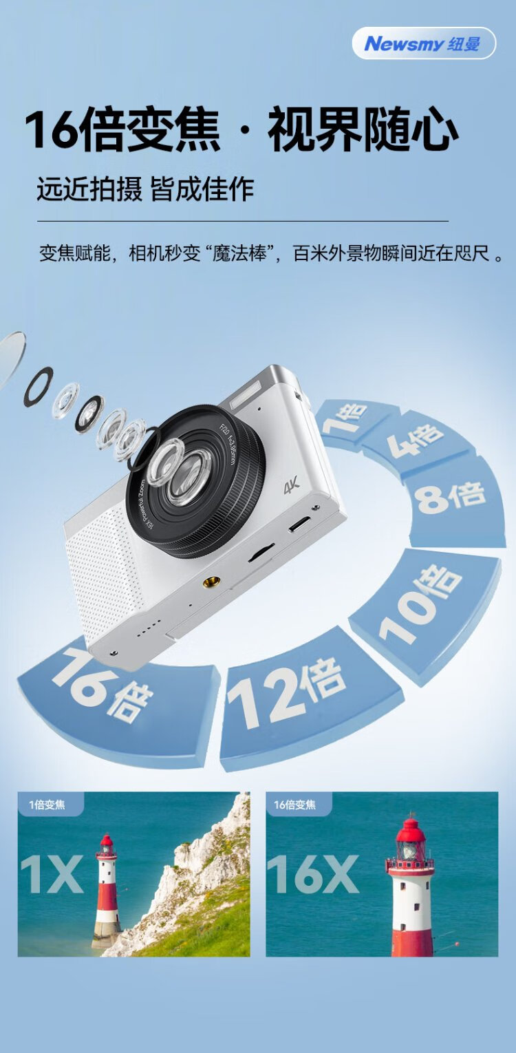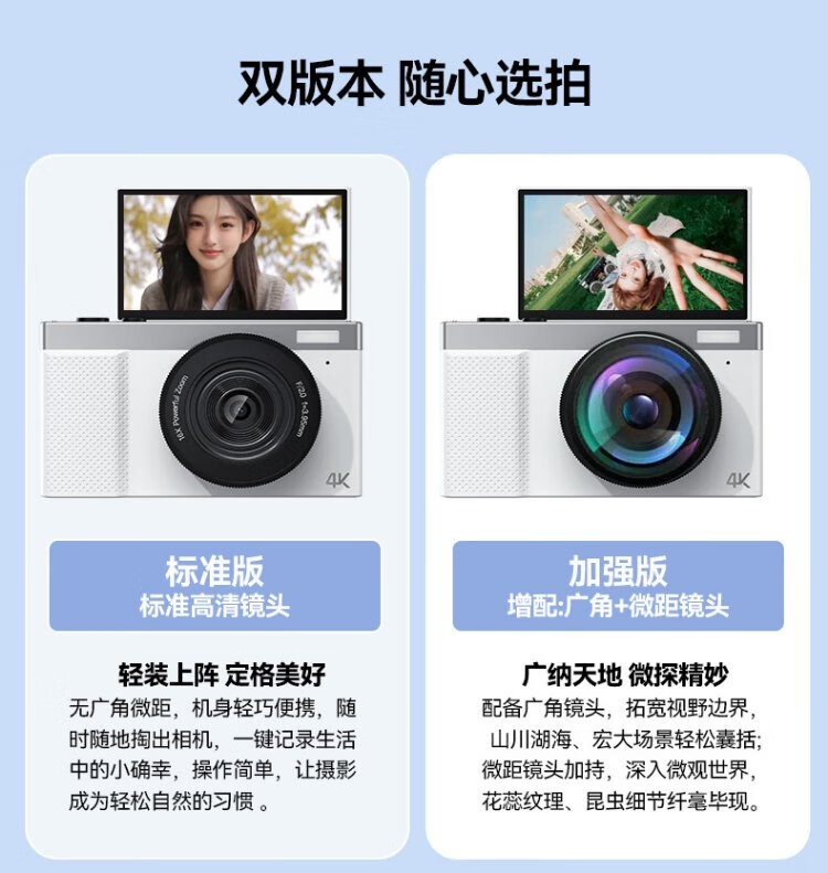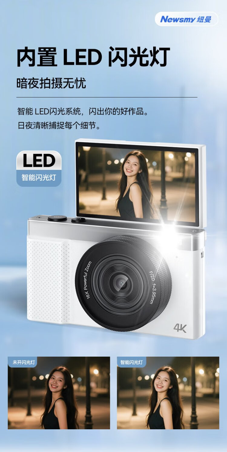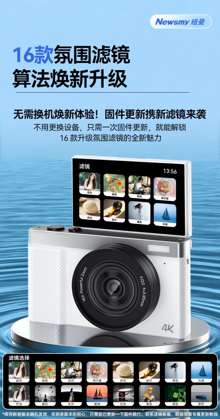 Newman (Newsmy) N8 digital camera student party ccd flip screen selfie high-definition pixel campus photo travel dedicated entry-level micro-single beauty filter girl birthday gift 128G + wide-angle lens