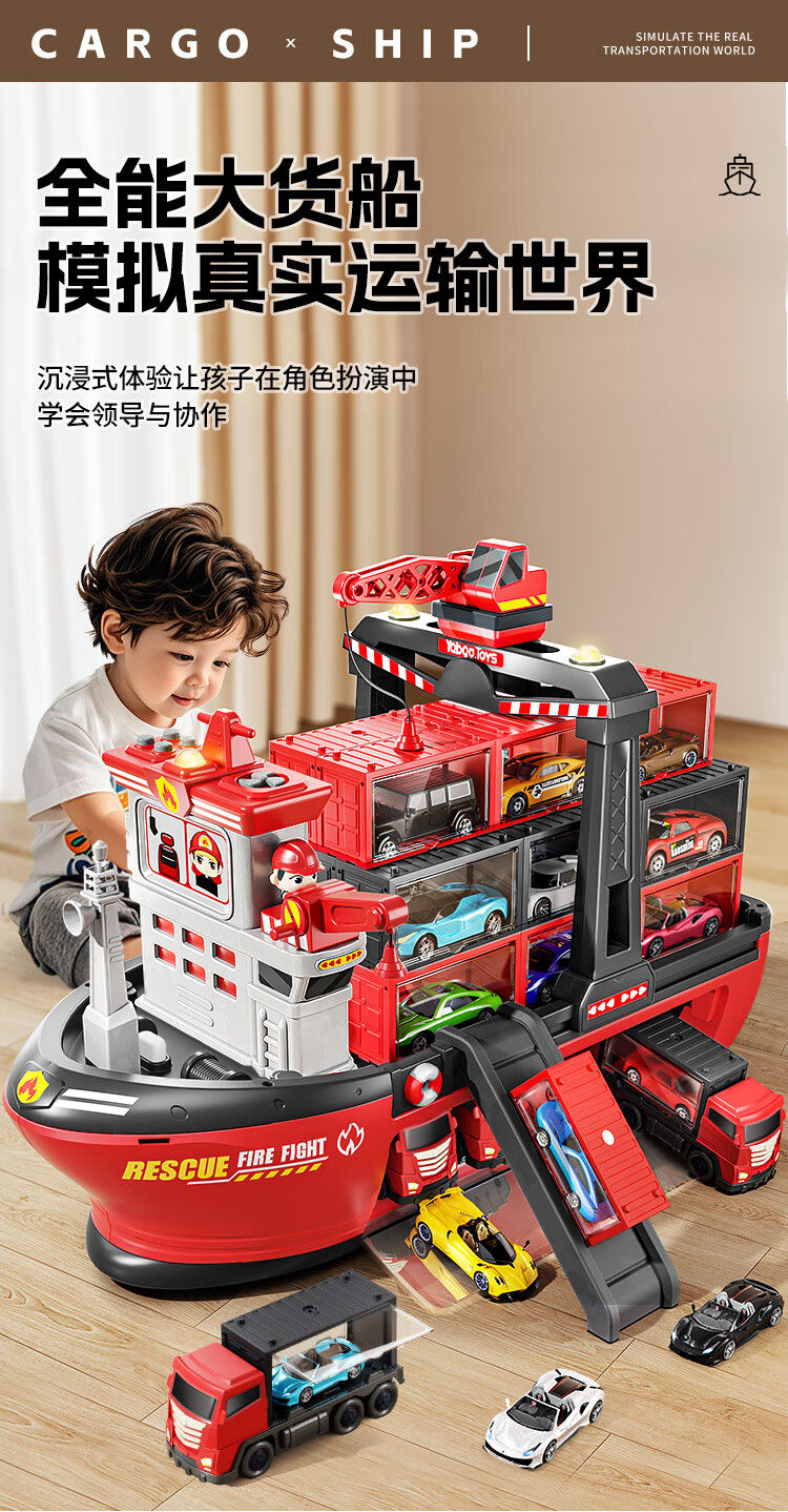 Ozhijia children's toy ship 3-6 years old toy car boy fire truck large car gift box New Year's birthday gift