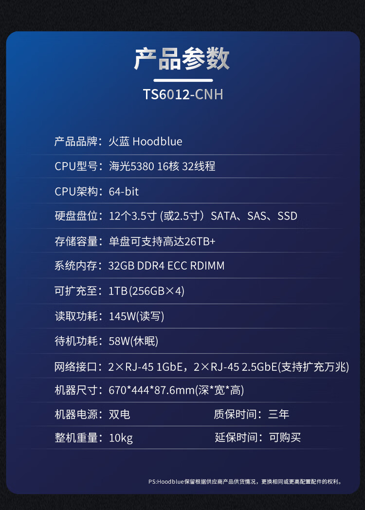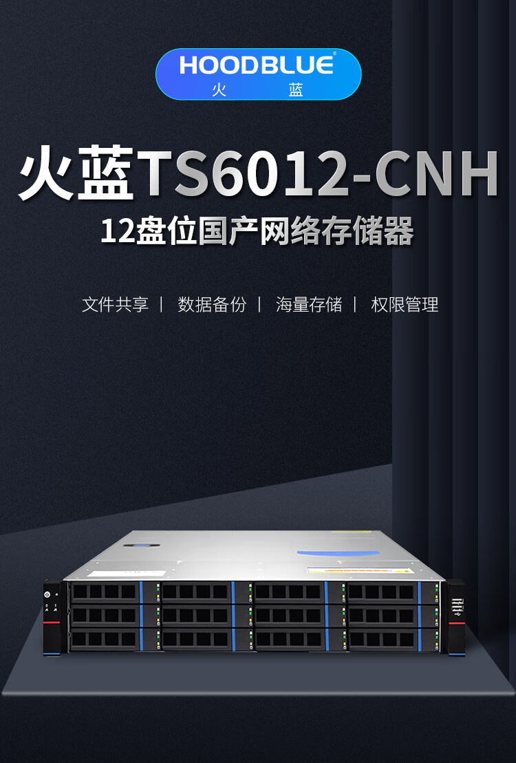 Hoodblue TS6012-CNH domestic Xinchuang Haiguang NAS network storage 12-bay private cloud storage disk array enterprise storage server TS6012-CNH-96TB