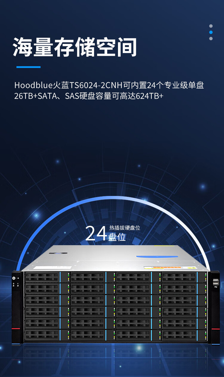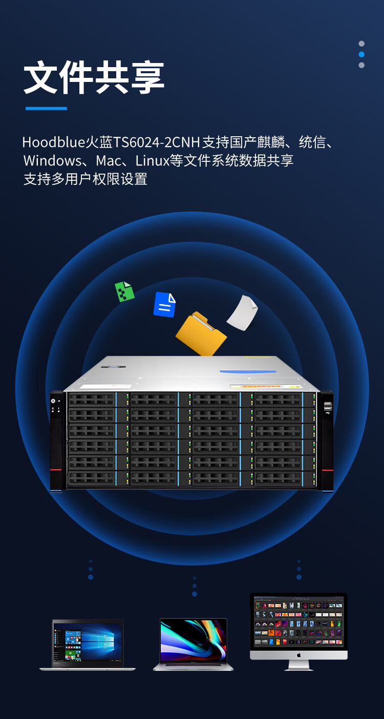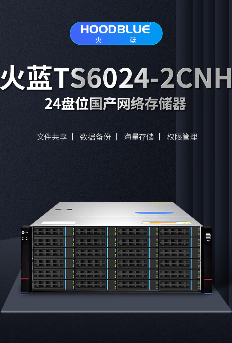 Hoodblue 10G fiber optic NAS network storage domestic Xinchuang Haiguang CPU 24-bay private cloud storage shared backup disk array storage server TS6024-2CNH-384TB