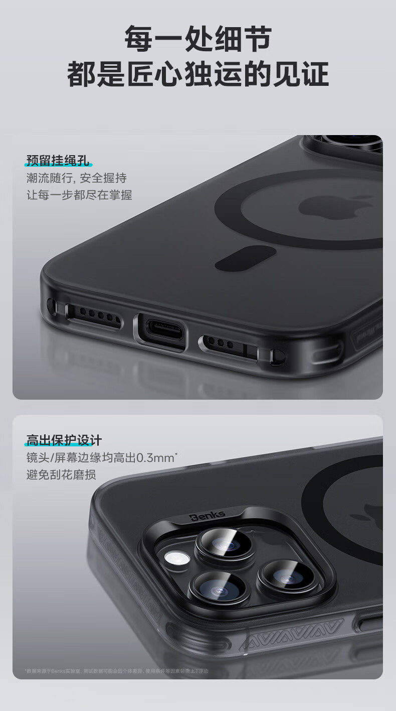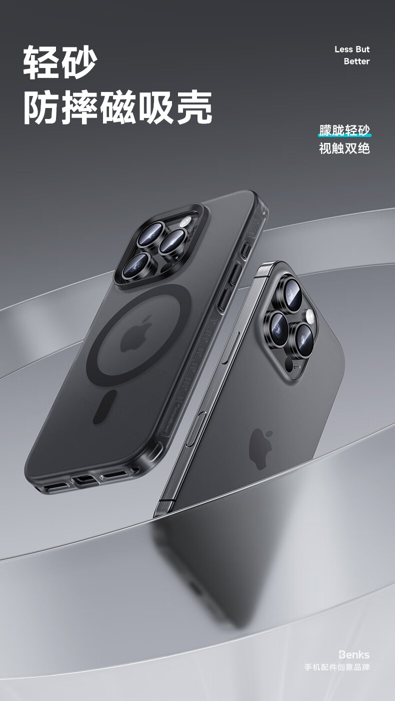 Benks comes with a camera button, suitable for iPhone 16 ProMax mobile phone protective case, iPhone 16proMax anti-fall magnetic case, light sand all-inclusive protective cover, black