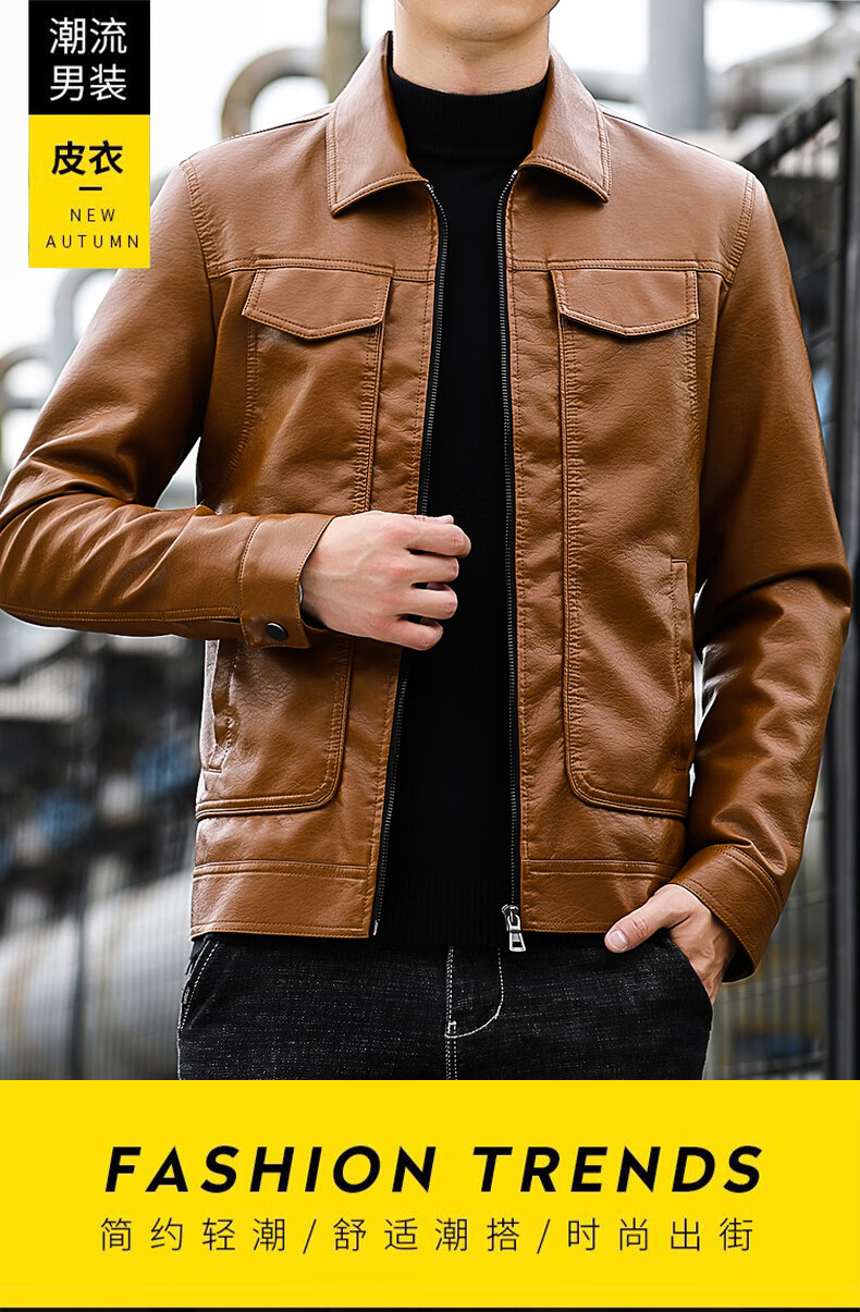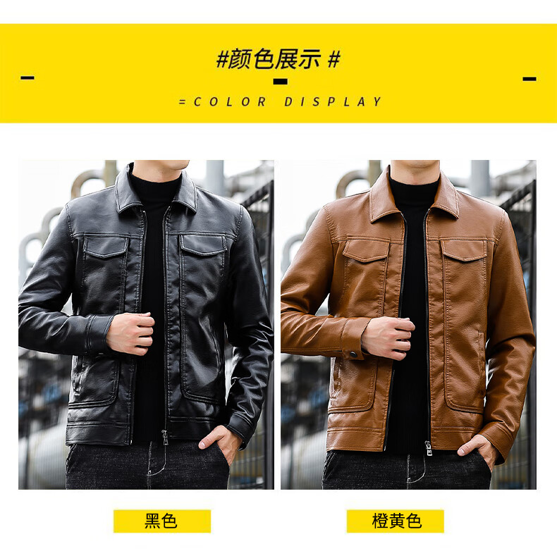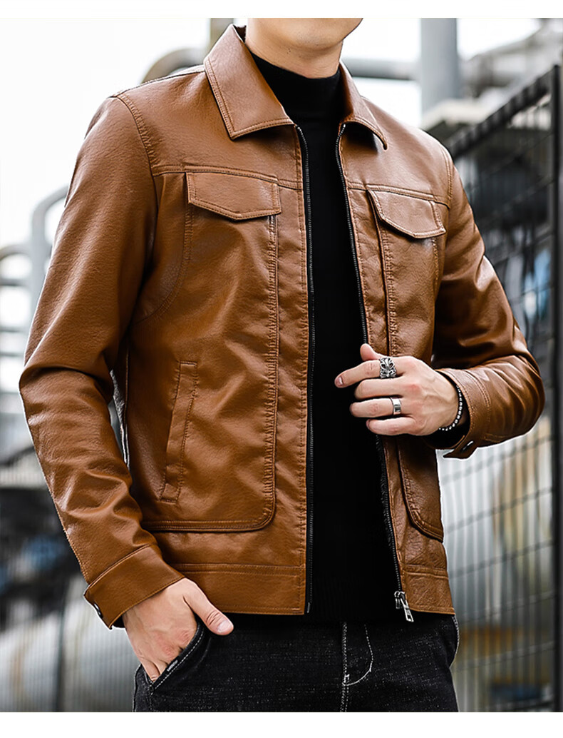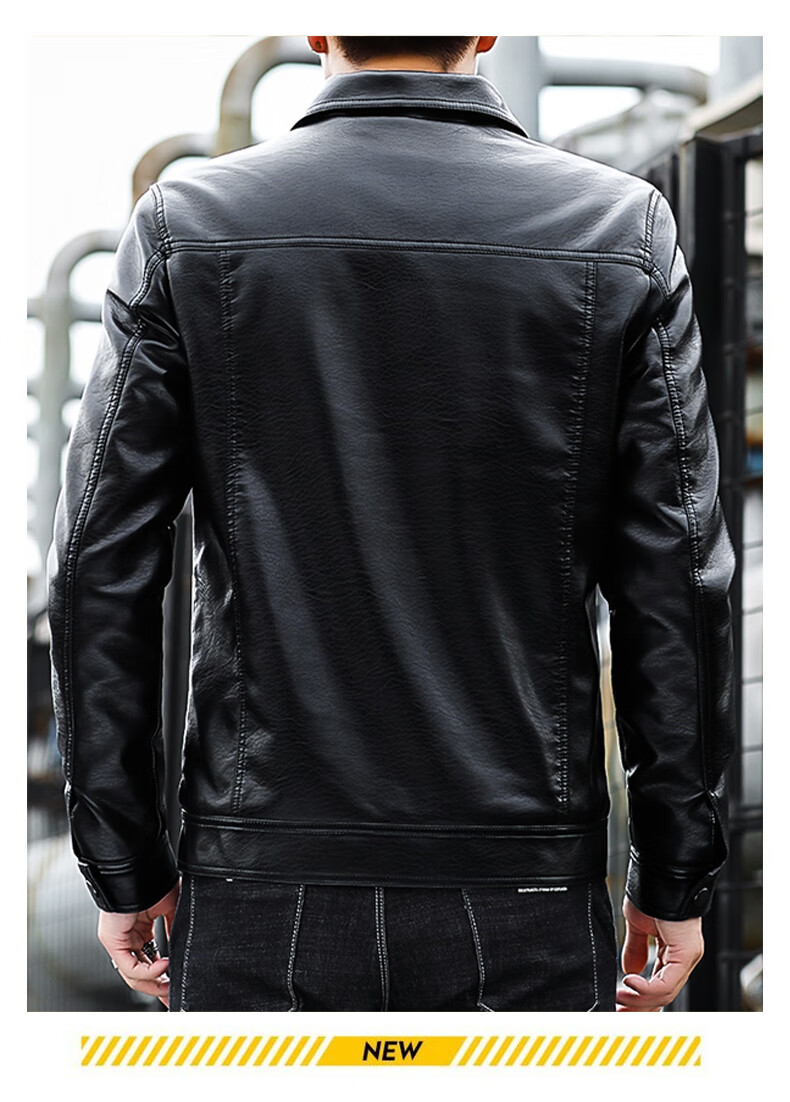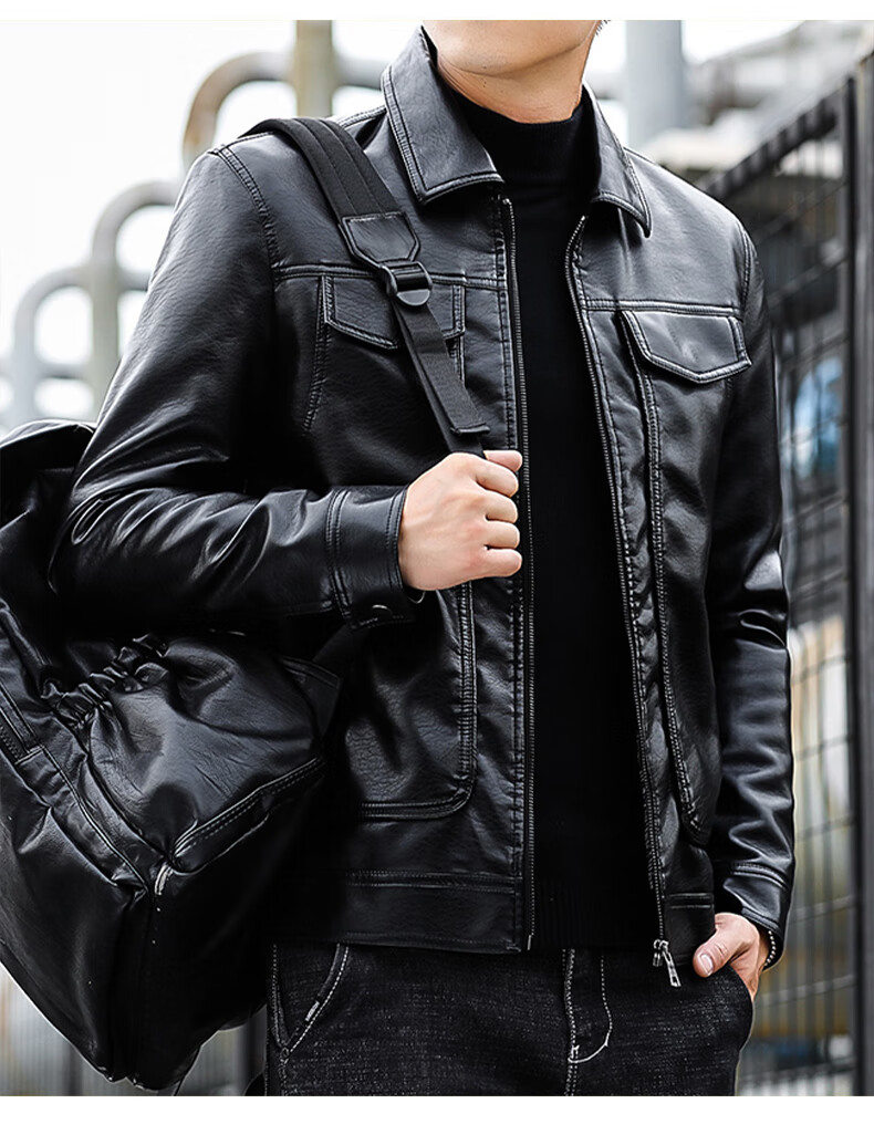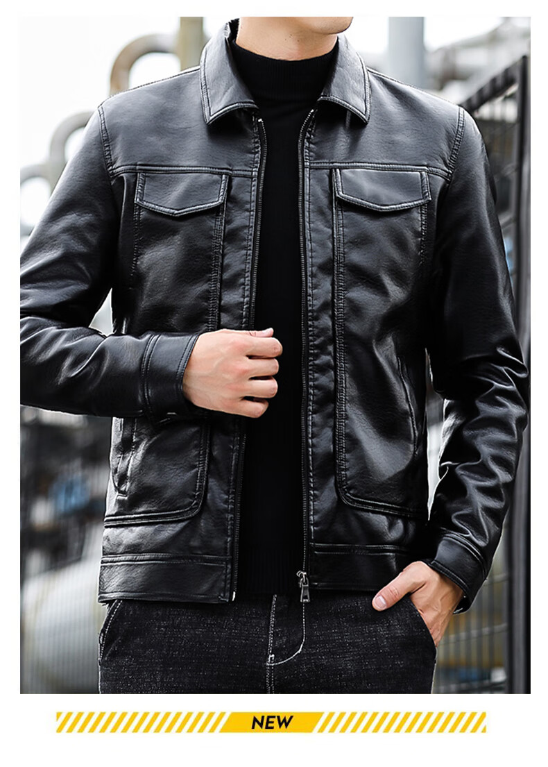 Pierre Cardin Jacket Men's Spring and Autumn Leather Casual Lapel Jacket Business Outdoor Top Jacket Black XL