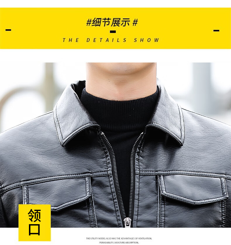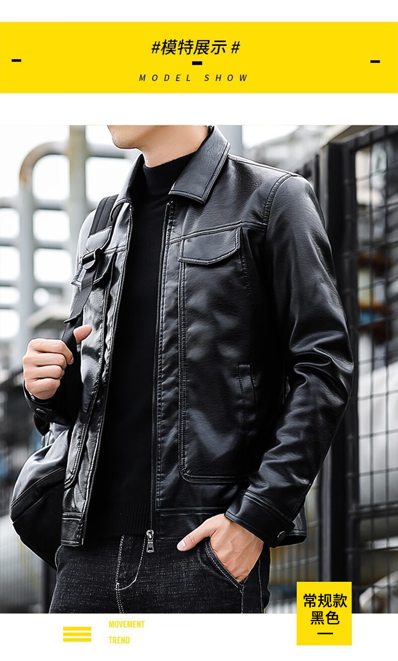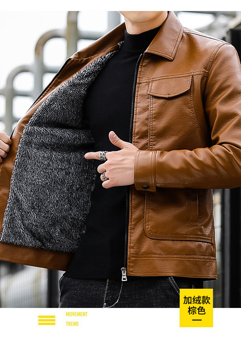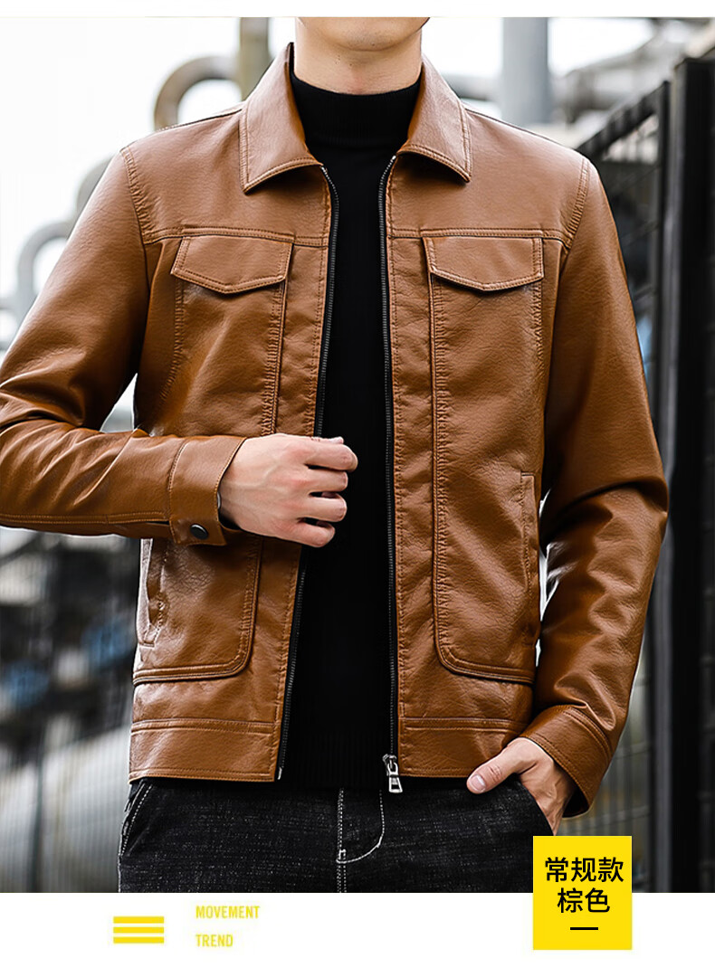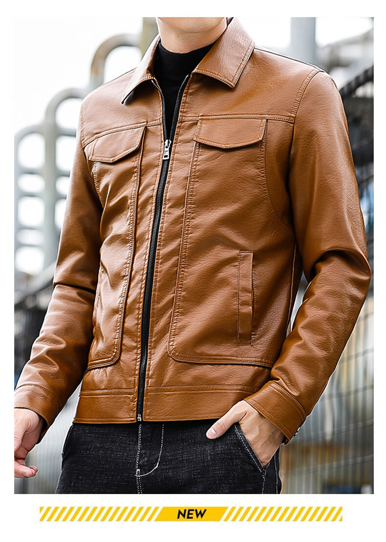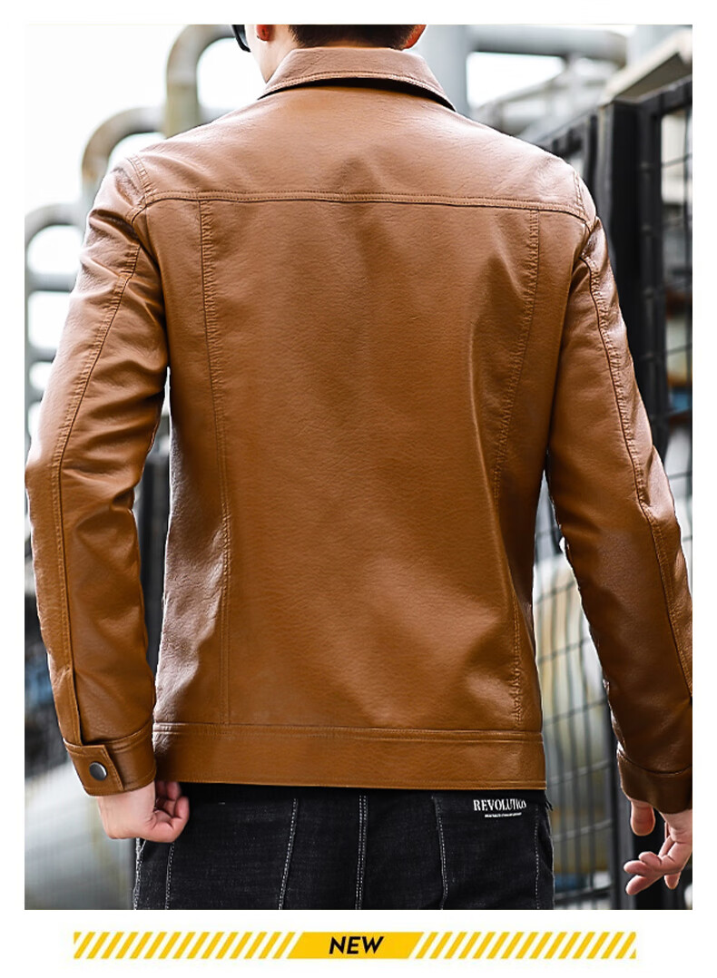Pierre Cardin Jacket Men's Spring and Autumn Leather Casual Lapel Jacket Business Outdoor Top Jacket Black XL